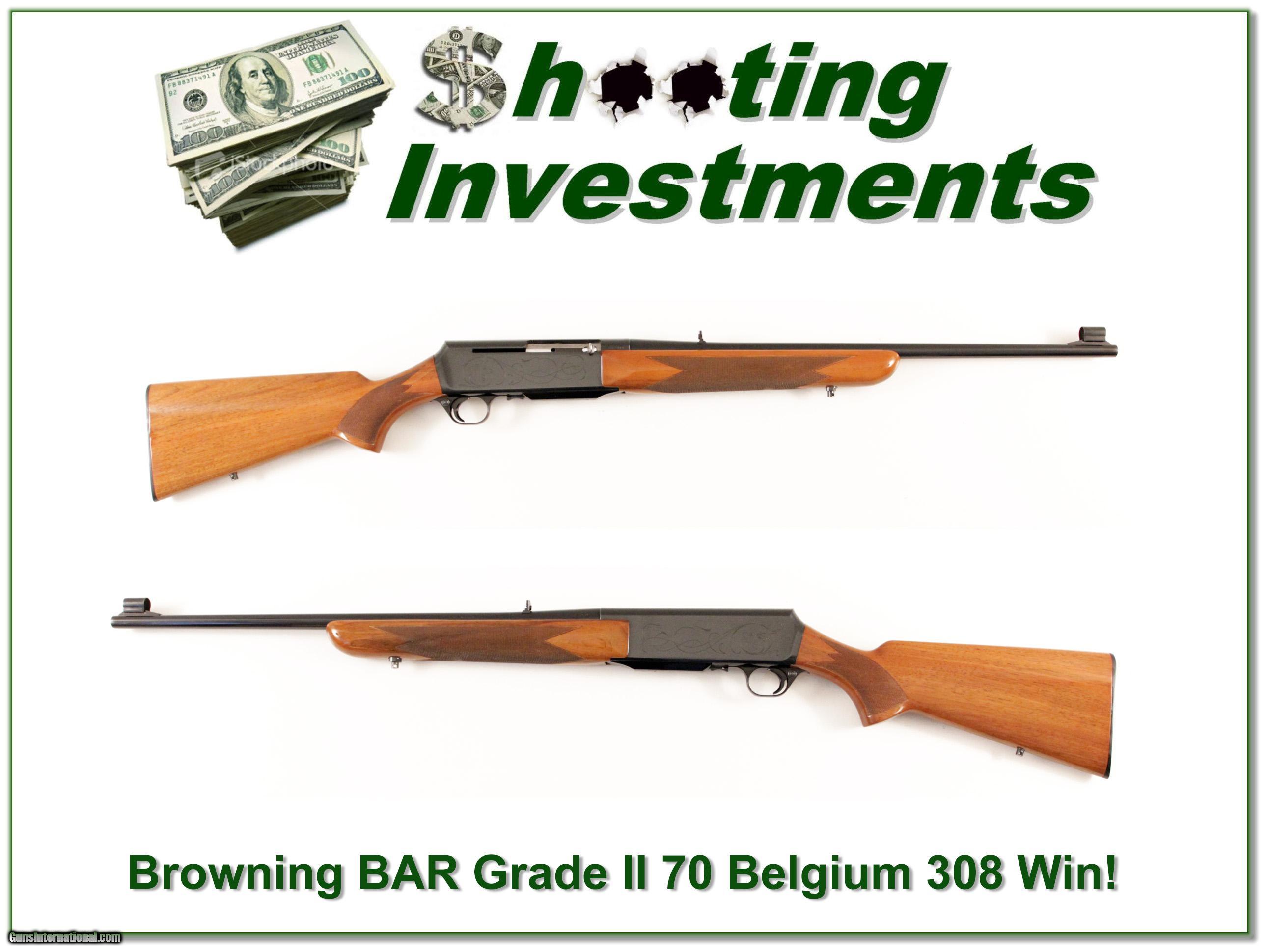 Description: This is an excellent condition Browning BAR in the hard to find 308 Winchester. This is a full Belgium Grade II made in 1970. It has Honey Blond wood with no marks I see. The blue shows little use and I’m sure never fired many rounds. This is one you can use or just add to your collection. It is sure to increase in value and that makes it a true Shooting Investment. Shipping and insurance is $35 or $15 more if you want it shipped in a new Plano hard case. Please email me with any questions or larger pictures. (I now consign quality firearms only 10%! Let me know if you have any you would like to sell!) [16-0995] Payment: Payment is by Money Order, Cashiers Check or Personal Check. I can now also accept MasterCard and Visa with a 3% convenience fee. PayPal can be used for some items but never firearms. Please let us know if you would like to pay via PayPal. Shipping: The shipping charge will be listed in each description. It is $35 for most guns. Some heavy guns or those insured for over $2000 will be higher. Shipments to Alaska and Hawaii are higher because air shipment is required. Most firearms are shipped within 5 days of receipt of payment. We prefer shipping at the beginning of the week to avoid firearms in transit over weekends. We package all shipments carefully and insure them for the full purchase price, rounded up to the next $100. In the unlikely event that damage occurs, it is important that you save all packaging material for the claims process. Optics are shipped Priority Mail and most other non-firearm shipments are shipped First Class. Returns: Our return policy is simple. If for any reason you are not pleased with your purchase, you may return your item for a refund. The only exception is ammunition, it cannot be returned. It is important to us that you are happy. Guns cannot be fired or dissembled before returning them and must be returned in the same condition as received. Notification of a return must occur with-in 3 days of receipt at your dealer. Shipping, convenience and dealer fees are not refundable and are the responsibility of the buyer. Lay-a-way: If needed, we offer a 60 day lay-a-way option on most firearms. It is 1/3 now, 1/3 in 30 days and 1/3 in 60 days. Lay-a-way firearm sales are final. Consigning your firearms with Shooting Investments: We will help you get top dollar for your firearms. While most local guns shops charge 20% or more, our fee is only 10% with a minimum of $50. At your local gun shop it might take months to sell. Selling on-line provides instant access to thousands of interested buyers. You won’t find any other on-line dealer willing to sell your firearms for only 10% or listing every gun on 4 separate s. Selling through an House typically costs the seller 15% and the buyer an addition 15% (so 30%) and you have to wait several months to sell and longer to receive funds. If properly priced, we will sell your firearms in a week or two. Send us an email or give us a call and we’ll explain how easy it is for you to get top dollar. Trading: We collect guns and usually just trade for guns we want to add to our collections. We often sell guns for others wanting to purchase one of ours. We find this the most fair to both of us. Our Commission is only 10% and we hold the gun you want until yours sells. Please contact us if you want to sell one of yours to buy one of ours. Help for California Buyers: We are happy to ship to California. It is the buyer’s responsibility to make sure any item you buy is legal in your state. We are also happy to help with your purchase of a firearm from someone other than us. If you see a gun you would like to buy but the seller can’t or won’t ship to California we can help. You buy the gun and have it shipped to us. We’ll then ship it to your California dealer. The cost for this service is only $30 + shipping. Let me know if we can help! SOLD |