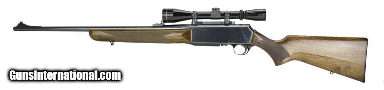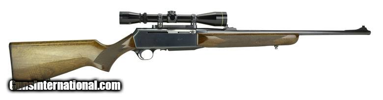 Description: Browning BAR .308 Win caliber rifle. Semi-auto deer rifle with Leupold 3x9 scope. Shows hunting wear, very good condition.