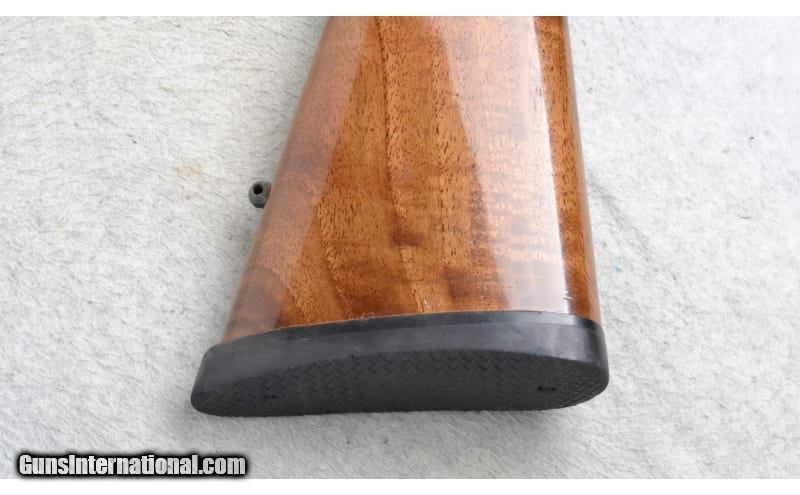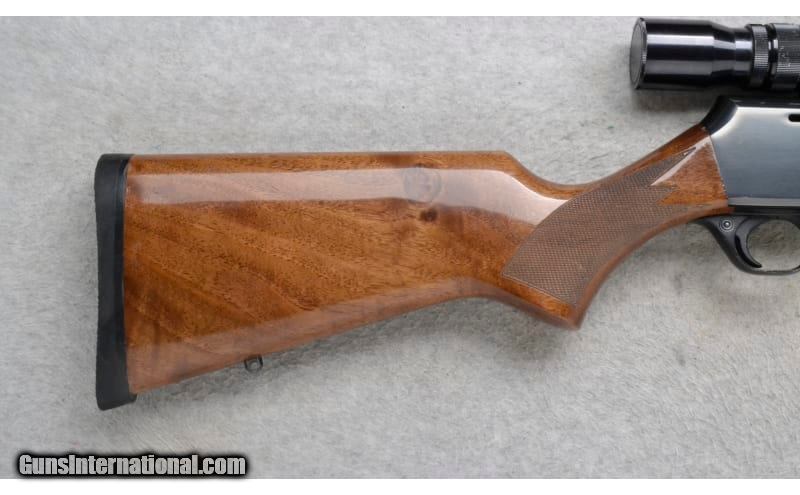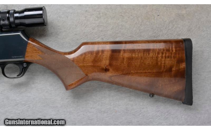 Description: This Browning Model BAR is a right hand semi-auto rifle in .338 Win. Mag. Cal. Only. It has a 24 inch barrel. A raised blade front sight and is outfitted with a Herters 3-9x38 Scope. The butt stock is a checkered grip walnut pistol grip. The forearm is a checkered grip walnut. Made in Belgium. .338 Winchester Magnum SOLD Chambers: Hidden detachable magazine. Metal Condition: Good. Has handling and use marks. Blue wear at the bore. Wood Condition: Has many light handling marks. Bore Condition: Excellent. Barrels: 24 inch. Stock Dimensions: LOP 13 1/8 inches. Fore End: Checkered grip walnut. Butt Pad: Browning black rubber recoil pad. Is a replacement. Weight: 9 lb. 8 oz. Sights: Raised blade front. Herters 3-9x38 Scope. Item Location: Richfield, WI |