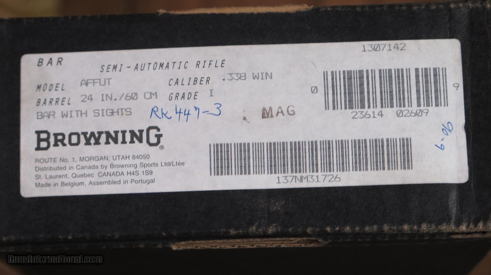 Description: Browning BAR 338 Win Mag. 24 inch barrel with sights. NM date code. In excellent 99% condition with original box and manual. SOLD Rifle Caliber: .338 Winchester Magnum |