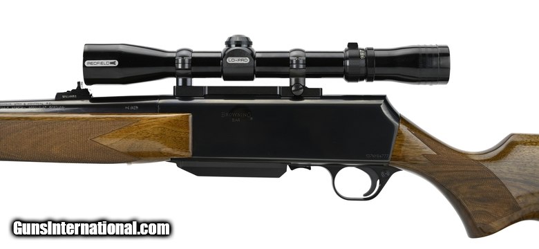 Description: Browning BAR 7mm Rem Mag caliber rifle. Early model semi-auto rifle with Redfield 3X9 Scope and leather sling. Excellent condition.