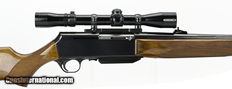 Browning BAR 7mm Rem Mag caliber rifle. Early model semi-auto rifle with Redfield 3X9 Scope and leather sling. Excellent condition.