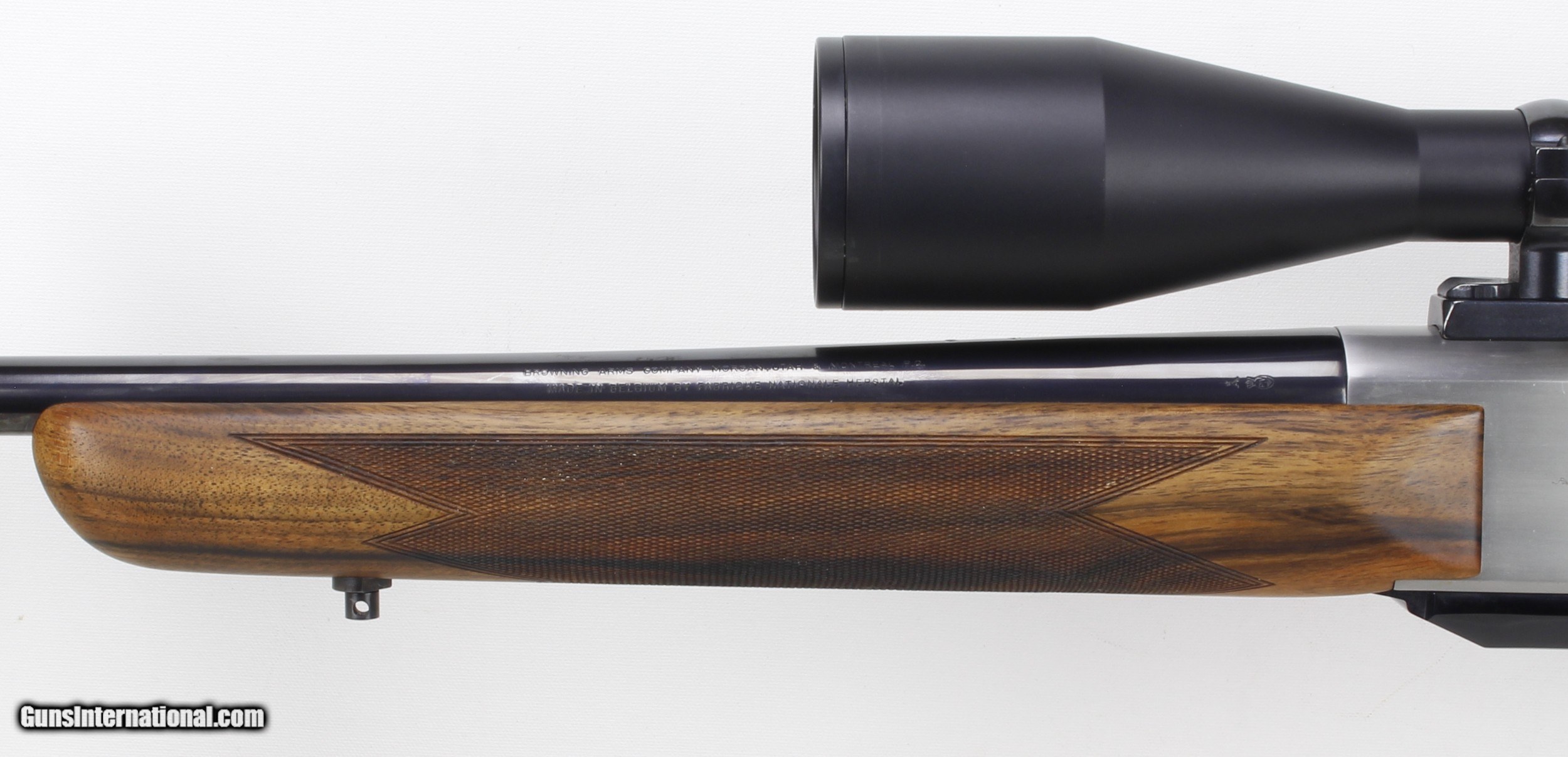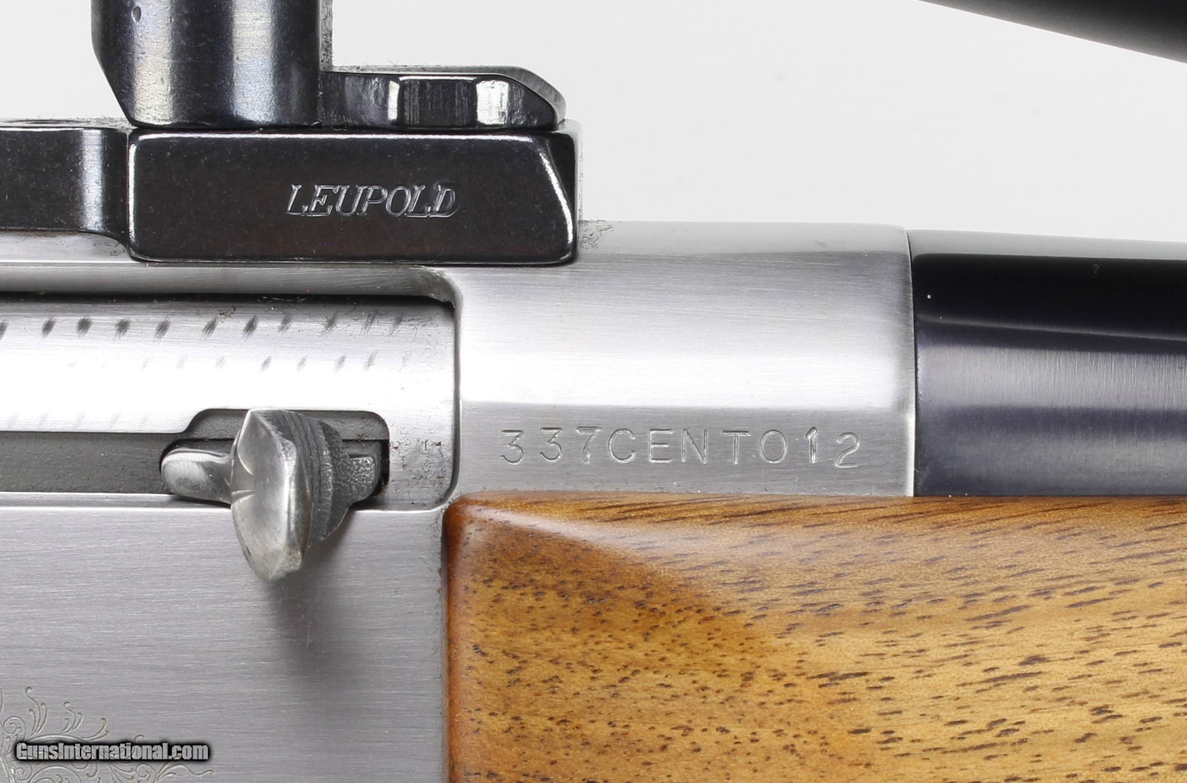Description: Browning BAR Centenary Rifle in .300 Win. Mag. SN #337 CENT 012. Mfg. in 1989. ONE OF A KIND RIFLE. #12 of only 100 made. So RARE that Browning had no information on this. LOP 13 3/8". 22" Heavy Barrel with an excellent bright bore with strong rifling. Appears to have hardly been fired. The blued barrel and Engraved Brushed Stainless Steel receiver with Gold Inlays are in "Like New" condition. The Grade 3 checkered pistol grip stock and forend are also in Mint condition. 3 round detachable magazine. Includes a Zeiss Diavari Z 3-12x56 T* Scope with Cross Hair Reticle. First focal plane. Perfect clearity at range (1100). A RARE AND STUNNING RIFLE. Made in Belgium. Weight: 10 lbs. Trigger Pull: 3 3/4 lbs. Ships to Lower 48 W/ Insurance $90.00. SOLD Rifle Caliber: .300 Winchester Magnum Manufacturer: Browning Model: BAR Serial Number: 337 CENT 012 Barrel Length: 22 Condition: EXCELLENT Metal Condition: EXCELLENT Wood Condition: EXCELLENT Bore Condition: EXCELLENT LOP: 13 3/8 Finish: BLUE / STAINLESS |