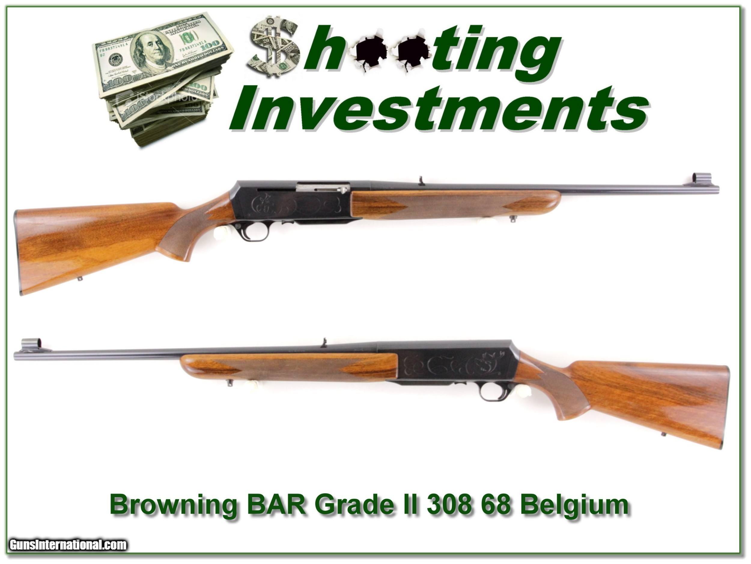 Description: This is a 1968 Belgium made Browning BAR Grade II in the harder to find 308 Winchester. The blue is excellent. The wood has excellent honey color with dark grain and a few minor marks. This is an early BAR with serial number on the barrel. It will make a classic hunting gun or fine addition to your collection. They just don’t make them like they used too! Shipping with insurance is $39. Please email me with any questions or larger pictures. (Consign your quality firearms with Shooting Investments for only 12%! Let me know if you have any you would like to sell!) 19-0935 Payment: Payment is by Money Order, Cashiers Check or Personal Check. I can now also accept Credit Cards (MasterCard, Visa, Discover & American Express) with a 3% convenience fee. PayPal can be used for some items but never for firearms. Shipping: The shipping charge will be listed in each description. It is $39 for most firearms. Some heavy guns or those insured for over $2000 will be higher. Shipments to Alaska and Hawaii are higher because air shipment is required. Most firearms are shipped on Tuesday and Thursday and usually in 5 days of receipt of payment. We package all shipments carefully and insure them. Optics are shipped Priority Mail and most other non-firearm shipments are shipped First Class. Returns: Our return policy is simple. If for any reason you are not pleased with your purchase, you may return your item for a full refund of purchase price. Ammunition cannot be returned. It is important to us that you are happy. Guns cannot be fired or dissembled before returning them and they must be returned in the same condition as received. Notification of a return must occur with-in 3 days of receipt at your dealer. Shipping, convenience and dealer fees are not refundable and are the responsibility of the buyer. Lay-a-way: If needed, we offer a 60 day lay-a-way option on most firearms. It is 1/3 now, 1/3 in 30 days and 1/3 in 60 days. Lay-a-way firearm sales are final and if not completed the first payment cannot be returned. Consigning your firearms with Shooting Investments: We will help you get top dollar for your firearms. While most local guns shops charge 20% or more, our fee is only 12% with a minimum of $75. At your local gun shop it might take months to sell. Selling on-line provides instant access to thousands of interested buyers. You won’t find any other on-line dealer willing to sell your firearms for only 12% or listing every gun on 3 separate s. Selling through an House typically costs the seller 15% and the buyer an addition 15% (so 30%) and you have to wait several months to sell and longer to receive funds. If properly priced, we will sell your firearms in a few weeks. Send us an email or give us a call and we’ll explain how easy it is for you to get top dollar. Trading: Trading for use is really just buying your gun to re-sell. If you have a gun you want to trade, please email a picture and we will let you know what we can give or it. You will always get more if we sell it for you on consignment. Help for California Buyers: We are happy to ship to California. It is the buyer’s responsibility to make sure any item you buy is legal in your state. We are also happy to help with your purchase of a firearm from someone other than us. If you see a gun you would like to buy but the seller can’t or won’t ship to California they can ship to use and we’ll then ship it to your California dealer. The cost for this service is only $30 + shipping. Let us know if we can help! SOLD |