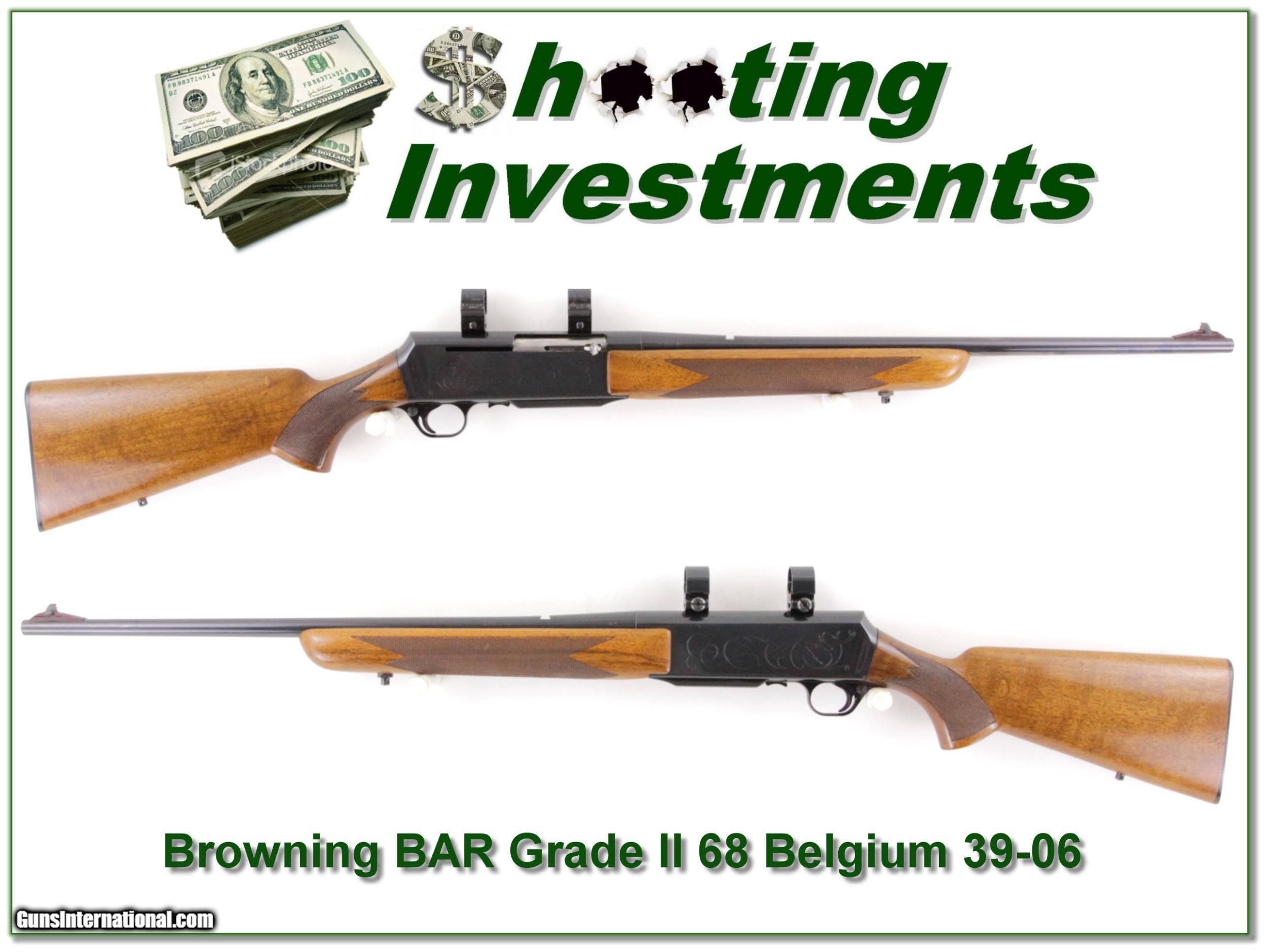 Description: This is a 1968 Belgium made Browning BAR Grade II in 30-06. It is an early BAR with serial number on the barrel. This one has excellent blue with no receiver carry wear. The honey colored wood has a few marks from use. It comes with bases and rings. The rear sight was removed but can be found on e-bay if you want to use it without a scope. This will make a classic hunting gun and they just don’t make them like this anymore! Shipping with insurance is $39. Please email me with any questions or larger pictures. (Consign your quality firearms with Shooting Investments for only 12%! Let me know if you have any you would like to sell!) 19-0497 Payment: Payment is by Money Order, Cashiers Check or Personal Check. I can now also accept MasterCard and Visa with a 3% convenience fee. PayPal can be used for some items but never firearms. Please let us know if you would like to pay via PayPal. Shipping: The shipping charge will be listed in each description. It is $39 for most long guns and $29 for most handguns. Some heavy guns or those insured for over $2000 will be higher. Shipments to Alaska and Hawaii are higher because air shipment is required. Most firearms are shipped on Tuesday and Thursday and usually in 5 days of receipt of payment. We package all shipments carefully and insure them. For long guns you can purchase a new Plano case for $19. They now cost us $22 when buying 100 at a time. Optics are shipped Priority Mail and most other non-firearm shipments are shipped First Class. Returns: Our return policy is simple. If for any reason you are not pleased with your purchase, you may return your item for a full refund of purchase price. Ammunition cannot be returned. It is important to us that you are happy. Guns cannot be fired or dissembled before returning them and they must be returned in the same condition as received. Notification of a return must occur with-in 3 days of receipt at your dealer. Shipping, convenience and dealer fees are not refundable and are the responsibility of the buyer. Lay-a-way: If needed, we offer a 60 day lay-a-way option on most firearms. It is 1/3 now, 1/3 in 30 days and 1/3 in 60 days. Lay-a-way firearm sales are final and if not completed the first payment cannot be returned. Consigning your firearms with Shooting Investments: We will help you get top dollar for your firearms. While most local guns shops charge 20% or more, our fee is only 12% with a minimum of $75. At your local gun shop it might take months to sell. Selling on-line provides instant access to thousands of interested buyers. You won’t find any other on-line dealer willing to sell your firearms for only 12% or listing every gun on 3 separate s. Selling through an House typically costs the seller 15% and the buyer an addition 15% (so 30%) and you have to wait several months to sell and longer to receive funds. If properly priced, we will sell your firearms in a few weeks. Send us an email or give us a call and we’ll explain how easy it is for you to get top dollar. Trading: Trading for use is really just buying your gun to re-sell. If you have a gun you want to trade, please email a picture and we will let you know what we can give or it. You will always get more if we sell it for you on consignment. Help for California Buyers: We are happy to ship to California. It is the buyer’s responsibility to make sure any item you buy is legal in your state. We are also happy to help with your purchase of a firearm from someone other than us. If you see a gun you would like to buy but the seller can’t or won’t ship to California they can ship to use and we’ll then ship it to your California dealer. The cost for this service is only $30 + shipping. Let us know if we can help! SOLD |