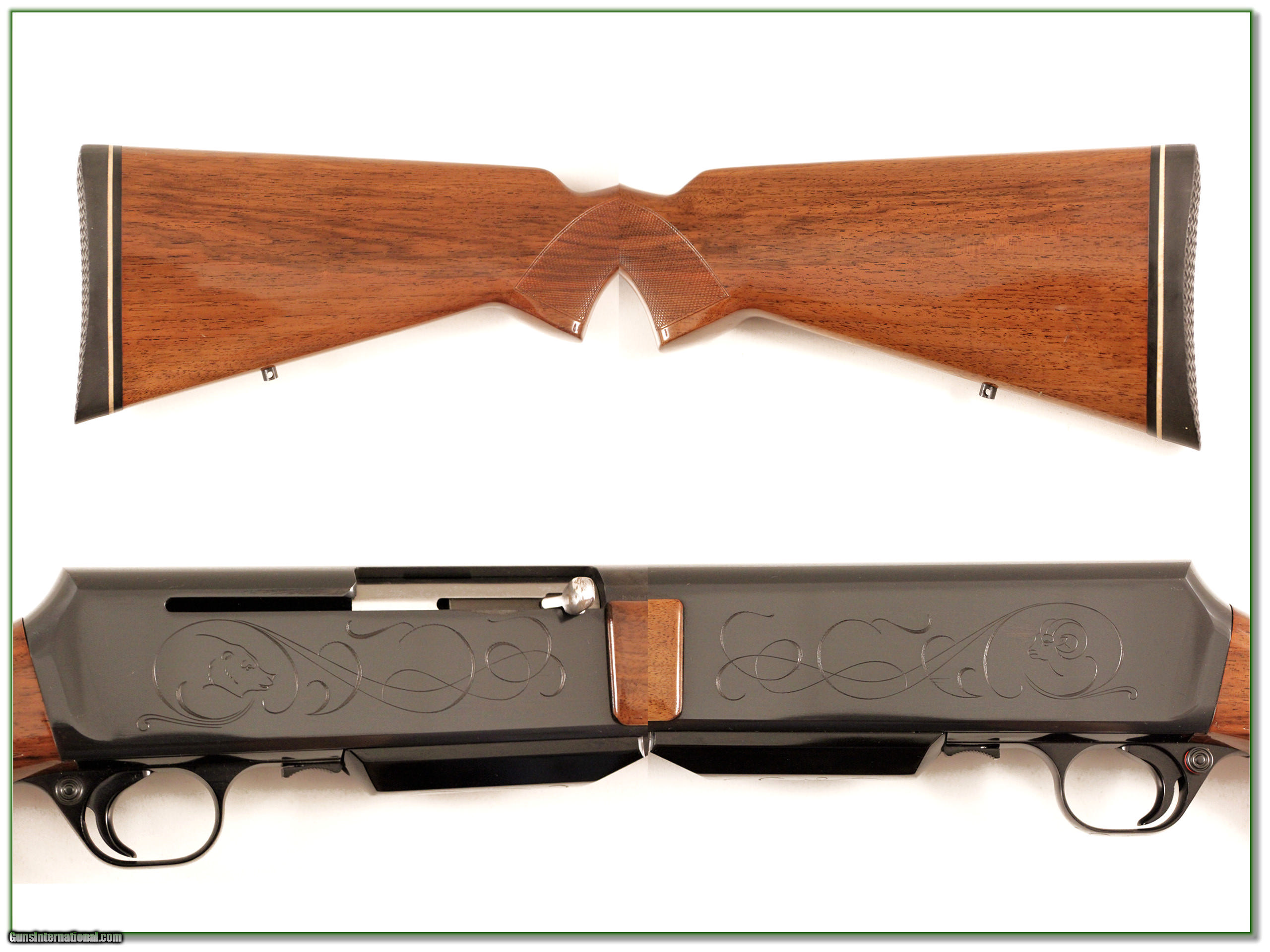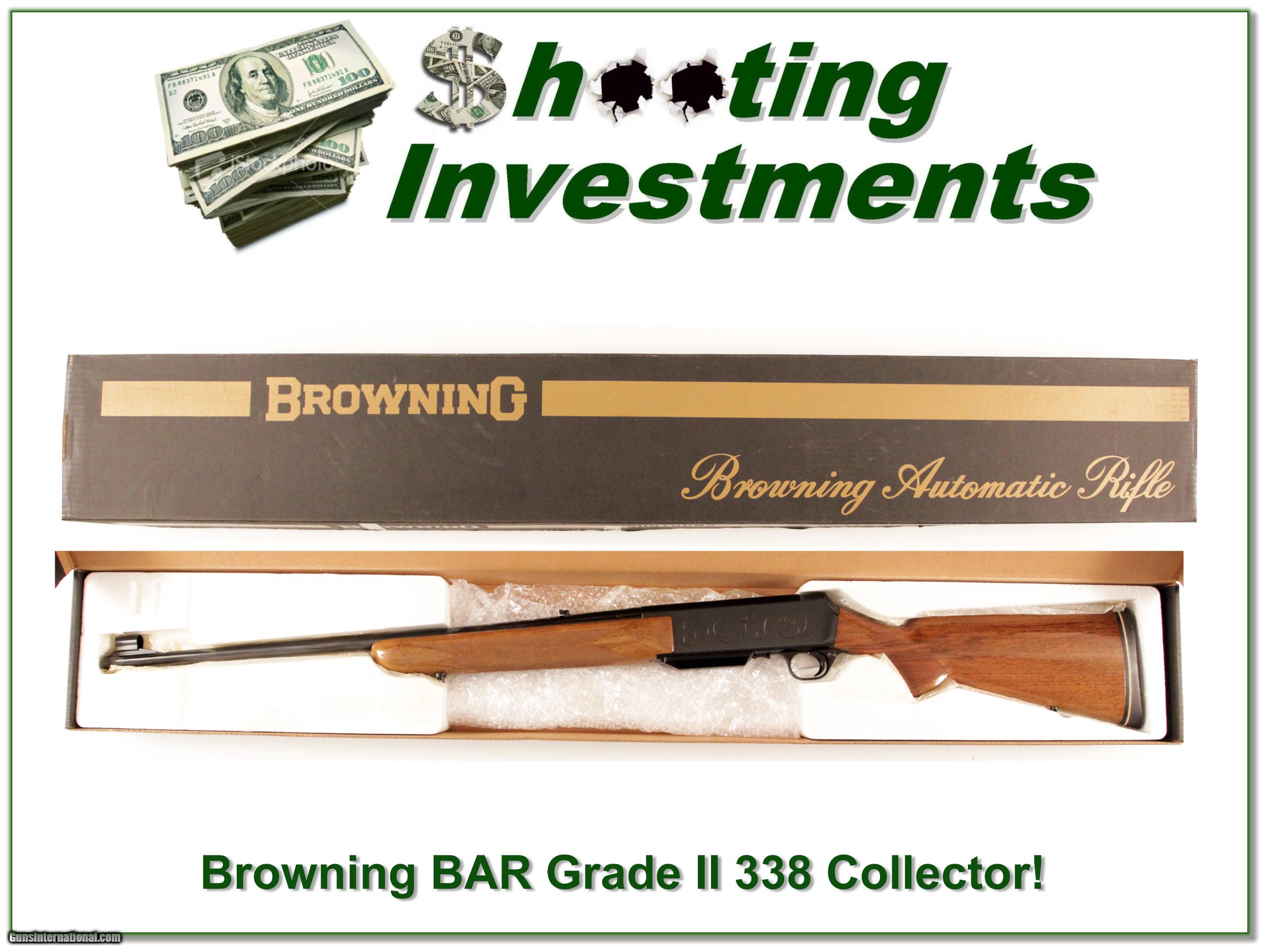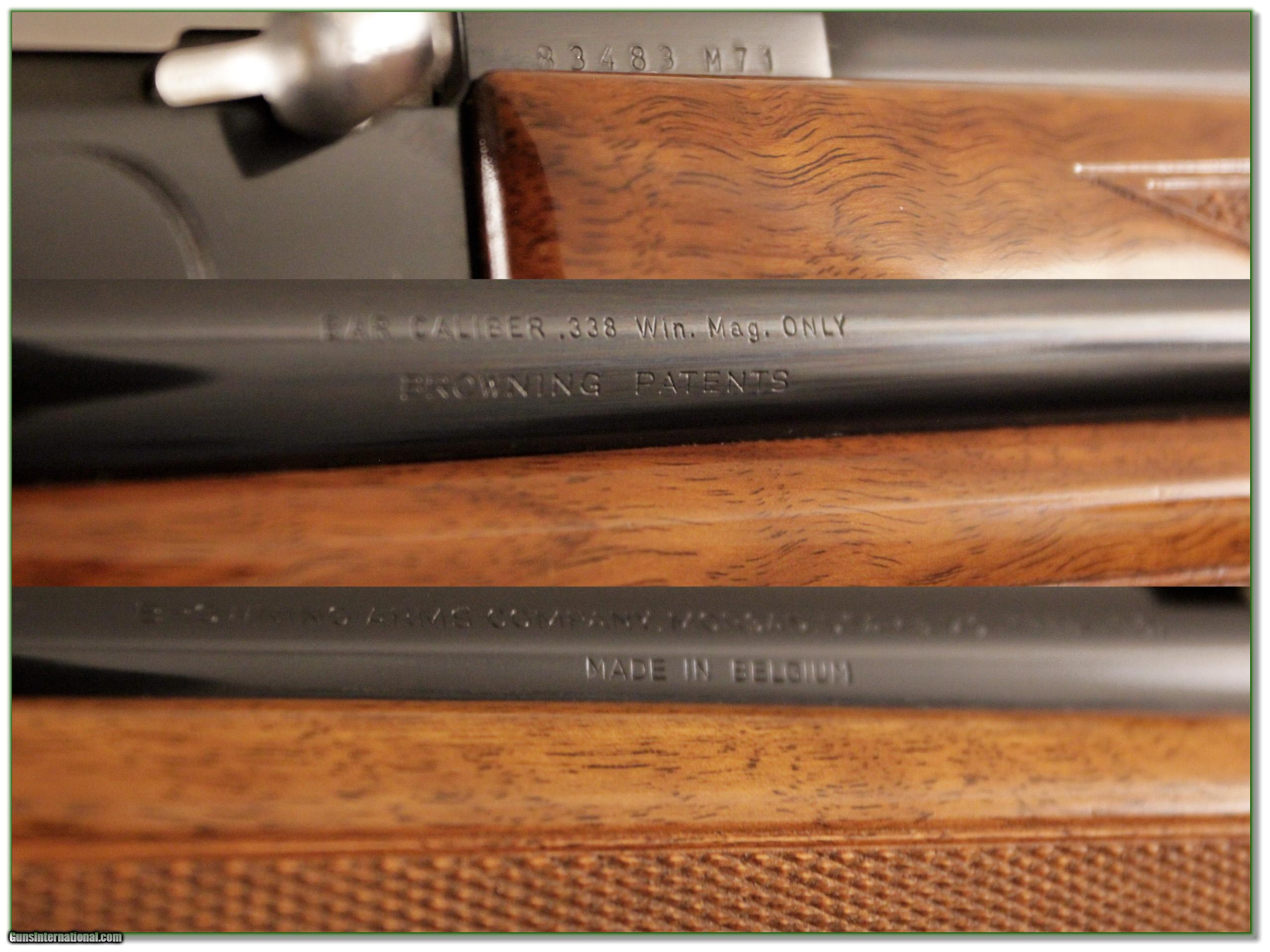 Description: Collectors, this is an excellent collector condition full Belgium Browning Grade II BAR in the hardest to find 338 Winchester Magnum. I am sure this one was never fired more than a few rounds. The honey colored wood has only a couple storage marks. It comes with box as show but the serial number on the end label is illegible. The gun will make a fine addition to your collection. It is a Shooting Investment! Shipping and insurance is $35. Please email me with any questions or larger pictures. (I now consign quality firearms only 10%! Let me know if you have any you would like to sell!) [16-0849] Payment: Payment is by Money Order, Cashiers Check or Personal Check. I can now also accept MasterCard and Visa with a 3% convenience fee. PayPal can be used for some items but never firearms. Please let us know if you would like to pay via PayPal. Shipping: The shipping charge will be listed in each description. It is $35 for most guns. Some heavy guns or those insured for over $2000 will be higher. Shipments to Alaska and Hawaii are higher because air shipment is required. Most firearms are shipped within 5 days of receipt of payment. We prefer shipping at the beginning of the week to avoid firearms in transit over weekends. We package all shipments carefully and insure them for the full purchase price, rounded up to the next $100. In the unlikely event that damage occurs, it is important that you save all packaging material for the claims process. Optics are shipped Priority Mail and most other non-firearm shipments are shipped First Class. Returns: Our return policy is simple. If for any reason you are not pleased with your purchase, you may return your item for a refund. The only exception is ammunition, it cannot be returned. It is important to us that you are happy. Guns cannot be fired or dissembled before returning them and must be returned in the same condition as received. Notification of a return must occur with-in 3 days of receipt at your dealer. Shipping, convenience and dealer fees are not refundable and are the responsibility of the buyer. Lay-a-way: If needed, we offer a 60 day lay-a-way option on most firearms. It is 1/3 now, 1/3 in 30 days and 1/3 in 60 days. Lay-a-way firearm sales are final. Consigning your firearms with Shooting Investments: We will help you get top dollar for your firearms. While most local guns shops charge 20% or more, our fee is only 10% with a minimum of $50. At your local gun shop it might take months to sell. Selling on-line provides instant access to thousands of interested buyers. You won’t find any other on-line dealer willing to sell your firearms for only 10% or listing every gun on 4 separate s. Selling through an House typically costs the seller 15% and the buyer an addition 15% (so 30%) and you have to wait several months to sell and longer to receive funds. If properly priced, we will sell your firearms in a week or two. Send us an email or give us a call and we’ll explain how easy it is for you to get top dollar. Trading: We collect guns and usually just trade for guns we want to add to our collections. We often sell guns for others wanting to purchase one of ours. We find this the most fair to both of us. Our Commission is only 10% and we hold the gun you want until yours sells. Please contact us if you want to sell one of yours to buy one of ours. Help for California Buyers: We are happy to ship to California. It is the buyer’s responsibility to make sure any item you buy is legal in your state. We are also happy to help with your purchase of a firearm from someone other than us. If you see a gun you would like to buy but the seller can’t or won’t ship to California we can help. You buy the gun and have it shipped to us. We’ll then ship it to your California dealer. The cost for this service is only $30 + shipping. Let me know if we can help! SOLD |