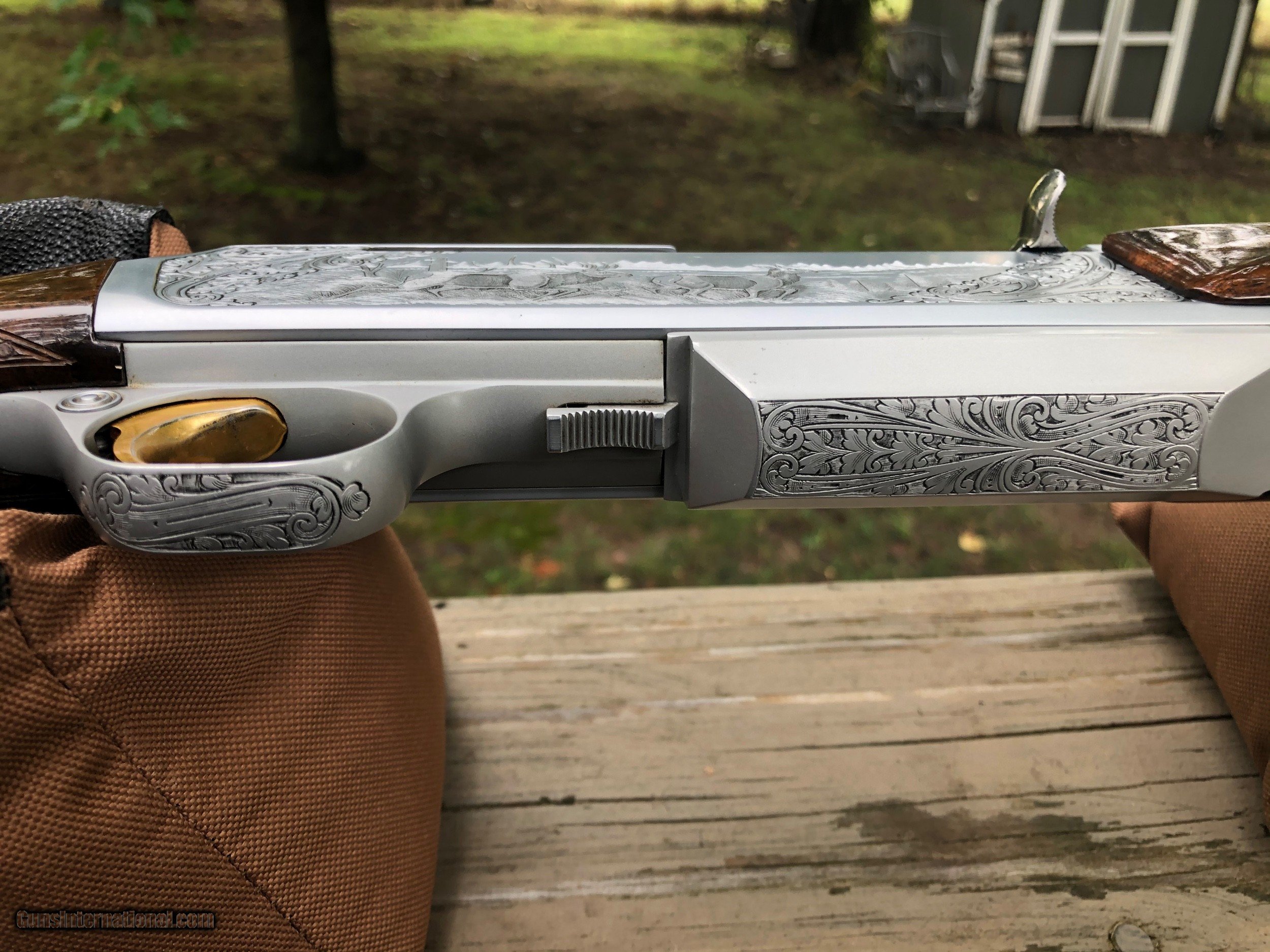 Description: Grade IV in 300 Winchester Magnum. Made in Belgium. Gun is simply excellent wood, metal & bluing. Very detailed Master engraver Bague engraving. 1979 DOM. Like new W/o box. Shipping $75 conus. Some glare in pics. Not imperfection in wood. SOLD |