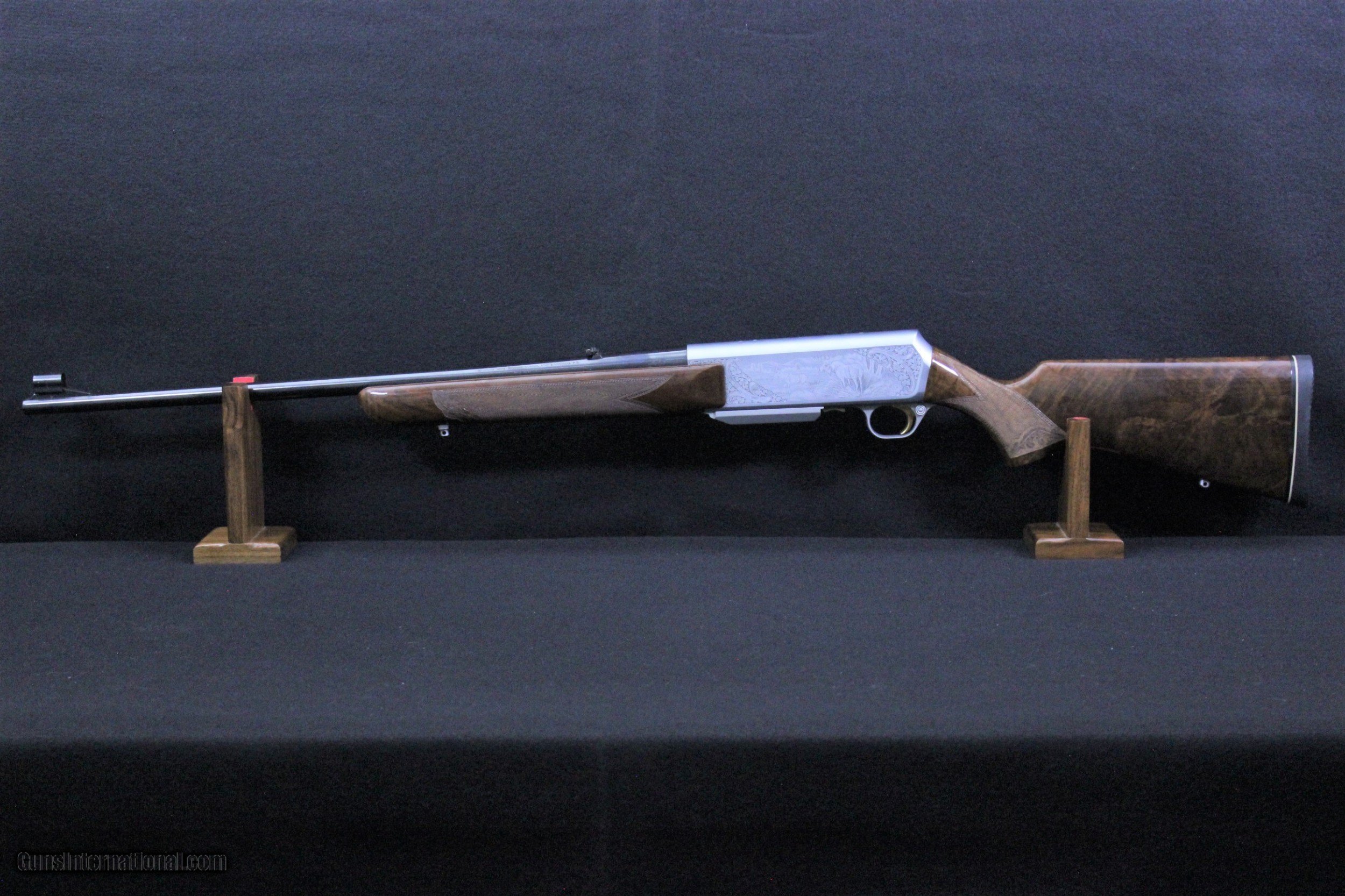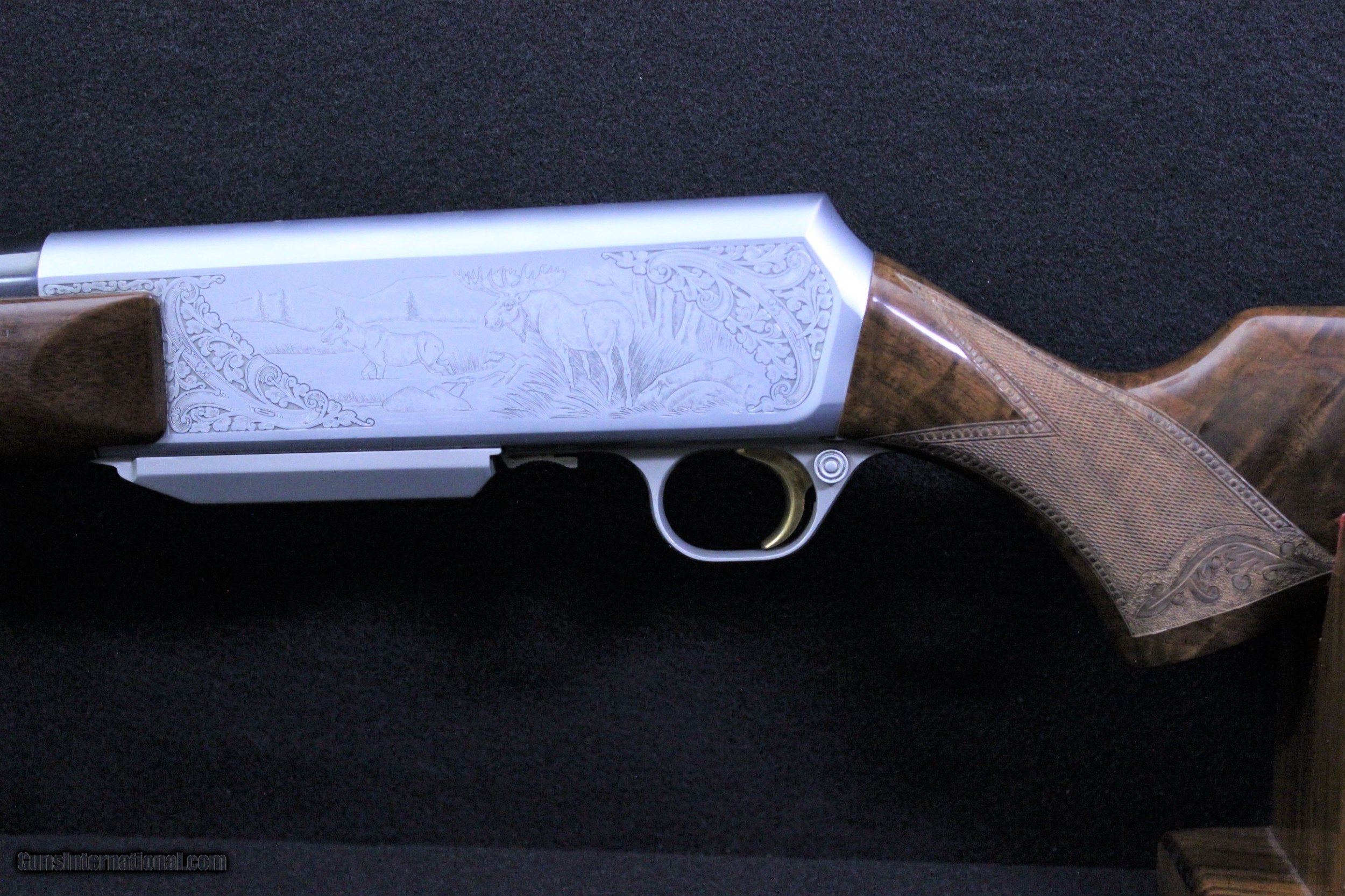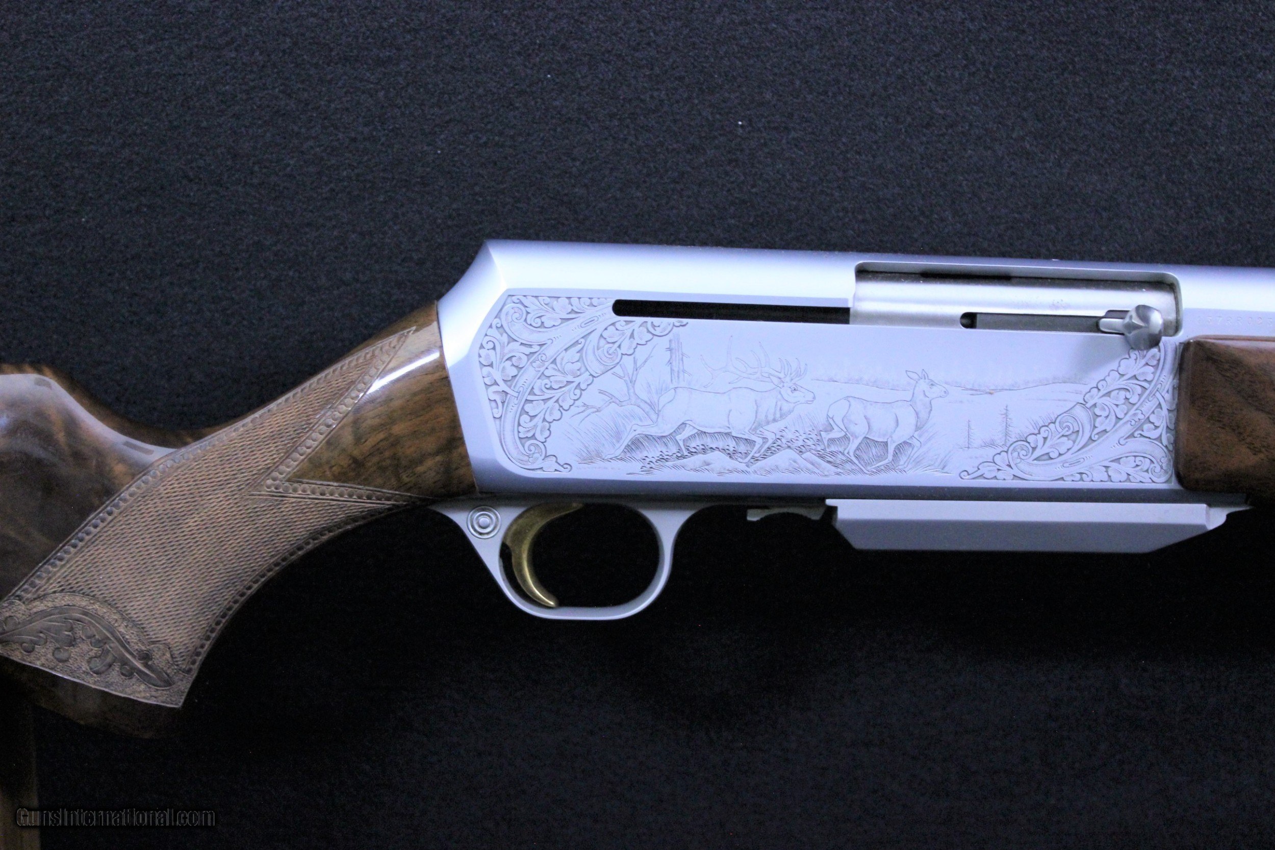 Description: Browning BAR Grade IV chambered in 7MM Rem. Mag. manufactured in 1977. This is a gorgeous rifle with amazing wood. Some minor handling marks but no scratches, chips or missing pieces. Checkering on pistol grip and forearm have remained crisp. Receiver has been floral and game scene engraved by L. Bague. Bore is excellent. Made in Belgium. Dimensions are as follows; BBL. 24" WT. 8lb. 8oz. DIM. 13 7/8" L.O.P. SOLD |