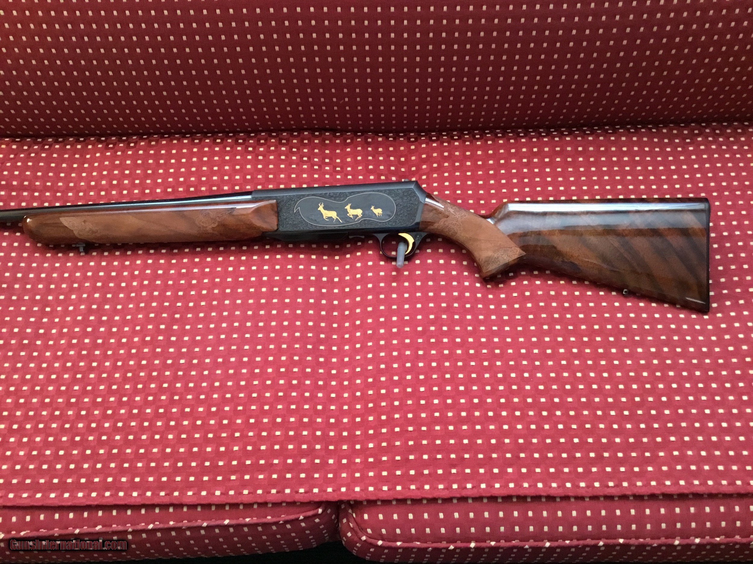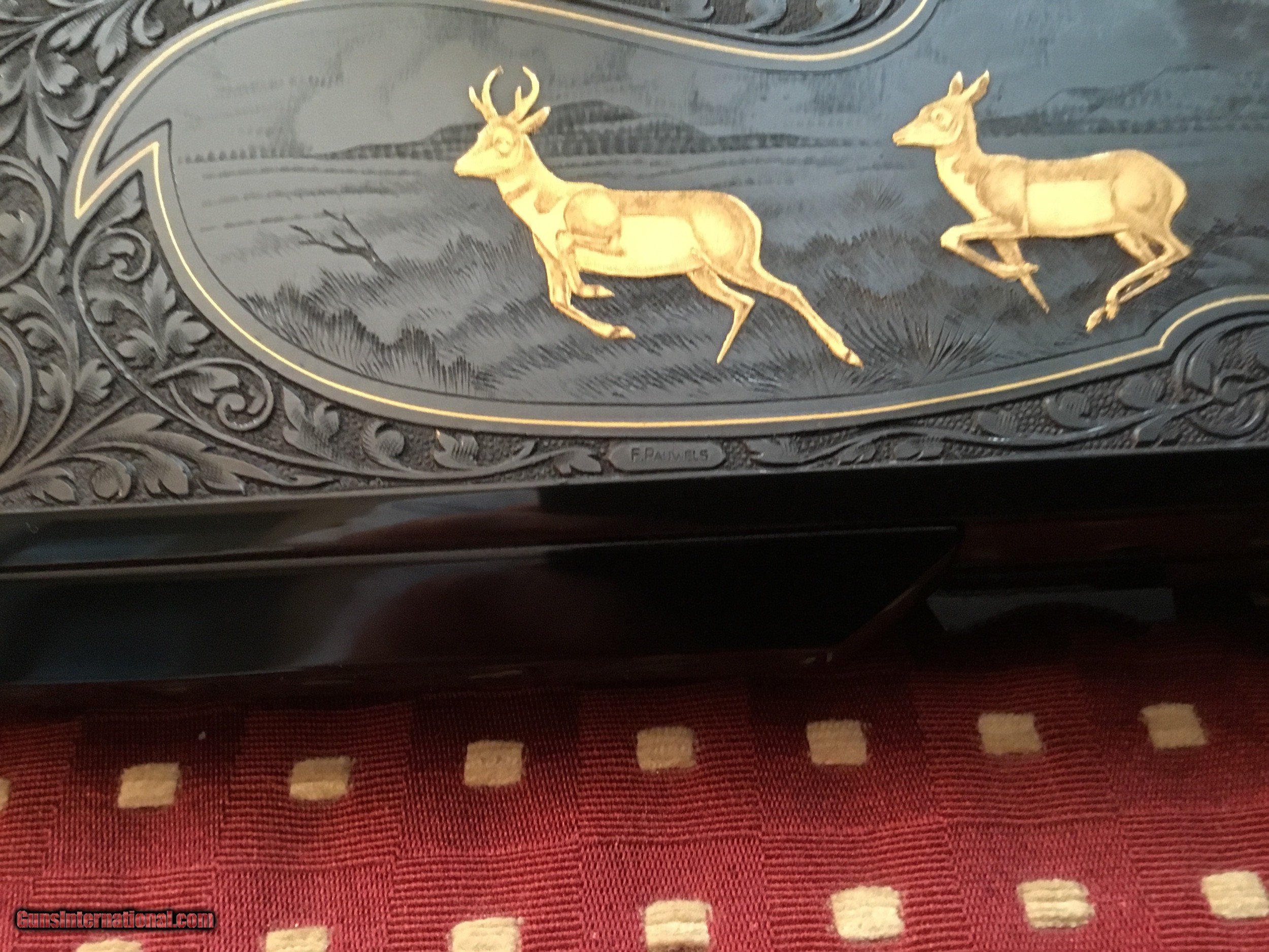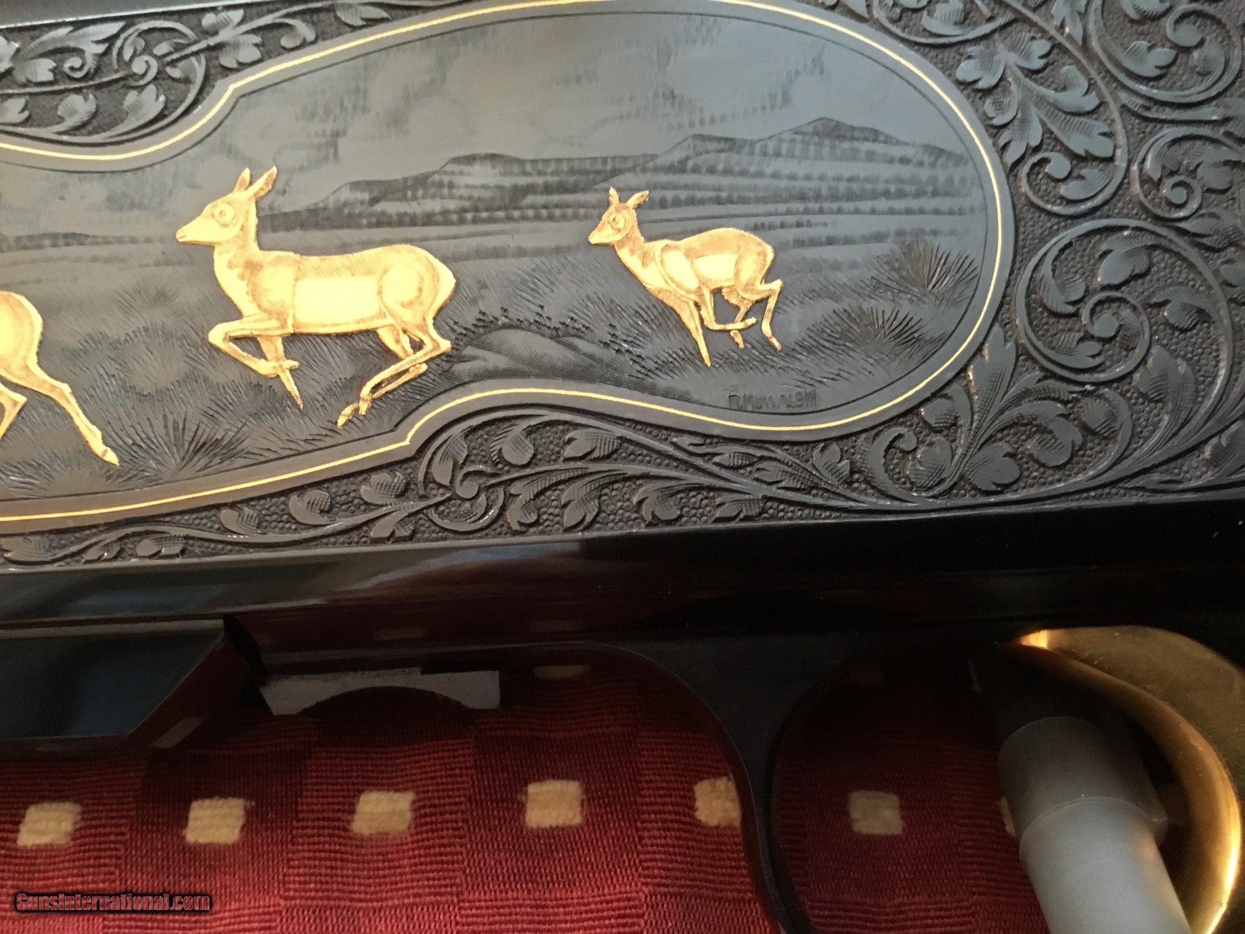 Description: Browning BAR grade V rifle in the popular 30-06 cal. Produced in 1972. All original new condition, appears unused in original box with manual. Engraved by R Kowalski and F Pauwels. SOLD |