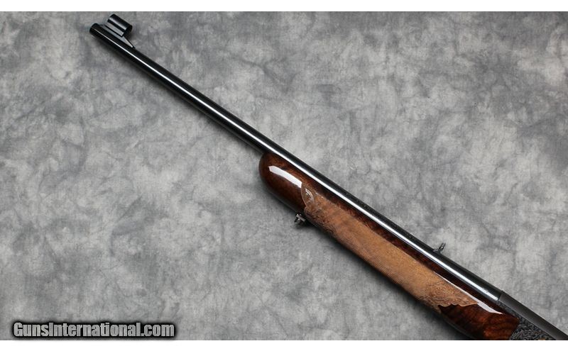 Description: For your consideration, a Browning BAR Grade V chambered in .30-06 Springfield. The blued action is engraved with very well cut, large, shaded scroll and acanthus with gold inlaid wire borders surrounding vignettes of semi-relief gold inlaid game animals in appropriate backgrounds; a paternity of pronghorn prance across prairie with mountains in background on left side, and family group of mule deer stroll into meadow on right. Game scenes are by noted by the Belgian Master engraver "R. Kowalski" whose signature appears underneath of the baby antelope on left side. "F.Pauwels" who is responsible for the scroll has also signed the left side under scene. Burl figured claro walnut stocks are finely checkered and have full relief carved scrolled acanthus with stippled background framing checkering. Excellent, near new, appears unfired, with only a few minor handling marks on wood and metal. This is of Begium manufacture. .30-06 Springfield SOLD Metal Condition: Excellent Wood Condition: Excellent Bore Condition: Excellent Barrels: 22 Triggers: Gold plated trigger Stock Dimensions: 14" LOP Fore End: Highly polished walnut forend with engravings Butt Pad: Browning plastic butt pad in black Weight: 10 Lbs Sights: "Adjustable U-notch folding rear sight, and gold bead front sight Item Location: Las Vegas, NV |