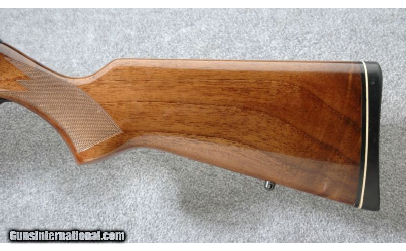 Description: This Browning BAR High Power Rifle chambered in 7mm Remington Magnum is in good condition. Few hunting rifles in history have achieved the status of the Browning BAR. The gas system combined with a 7-lug rotary bolt gives the BAR a significant recoil reduction for comfort, while at the same time locking in bolt action-like accuracy. SOLD Manufacturer: 1979 Caliber Info: 7mm Rem. Mag. Metal Condition: Good with some scratches and small nicks in the finish Wood Condition: Good with scratches and dents Bore Condition: Very good, bright and sharp Barrels: 24 inch barrel with 1:10 inch twist Stock: Checkered walnut pistol grip stock Stock Dimensions: 13 3/4 inch LOP Fore End: Checkered walnut Butt Pad: Browning rubber pad Weight: 8 lbs. 6 oz. with scope base Sights: Drilled and tapped for scope mounting Item Location: Lehi, UT |