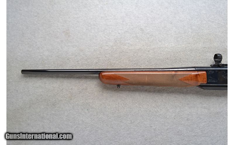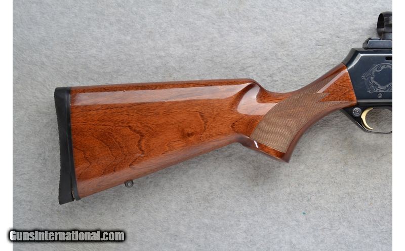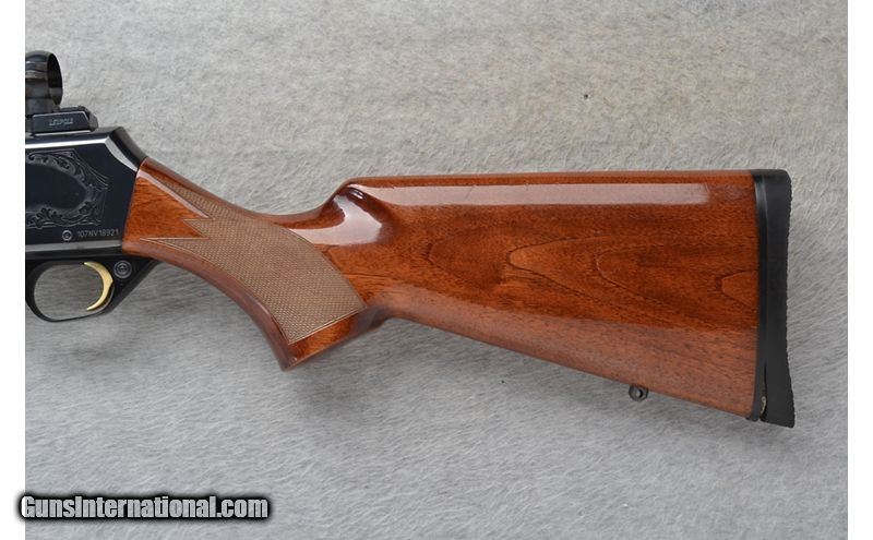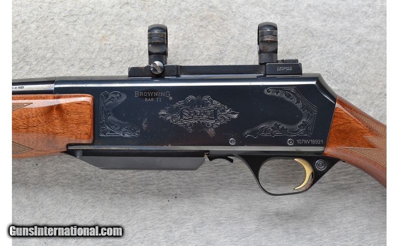 Description: This Browning Model BAR II is a right hand semi-auto rifle in .30-06 Sprg. Cal. Only. It has a 22 inch barrel. Scope rings are attached. The iron sights have been removed. The butt stock is a checkered grip walnut pistol grip. The forearm is a checkered grip walnut. The receiver is lightly engraved. .30-06 Springfield SOLD Chambers: Hidden detachable magazine. Metal Condition: Good. Receiver has a little minor freckling. Wood Condition: Good. Light handling marks. Bore Condition: Excellent. Barrels: 22 inch. Triggers: Golden. Stock Dimensions: LOP 13 inches. Fore End: Checkered grip walnut. Butt Pad: Browning black rubber pad. Weight: 7 LB. 15 OZ. Sights: Scope rings attached. No iron sights. Item Location: Richfield, WI |
