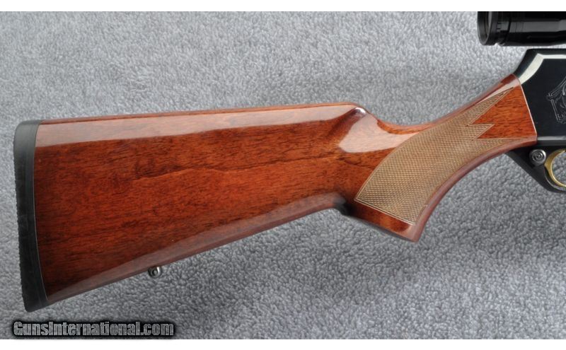 Description: This is the rifle that set the standard for hunting semi-autos. Browning's Ballistic Optimizing Shooting System (BOSS) controls & tunes barrel vibrations for greater accuracy. SOLD Manufacturer: 1997 Caliber Info: .300 Winchester Magnum Metal Condition: Very good showing very light use Wood Condition: Very good with a few light creases Bore Condition: Sharp & bright Barrels: 24" with B.O,S.S. (BalisticOptimiizing Shooting System) Triggers: Goldt plated Stock: Checkered pistol grip Turkish Walnut Stock Dimensions: 13 3/4" LOP Fore End: Checkered beavertail Butt Pad: Browning rubber Weight: 9 lbs 8 oz Sights: Bushnell Elite 3200 3-9x Extras: Factory box and Item Location: Grand Junction, CO |