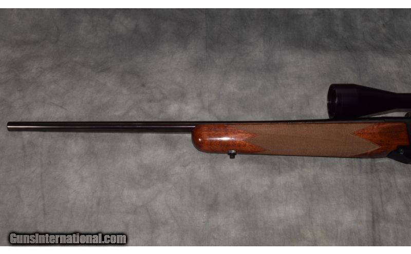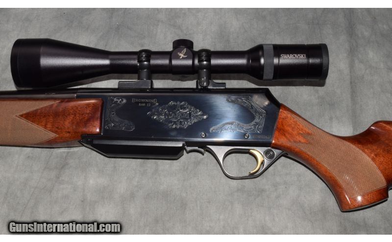 Description: The Browning BAR sporting version is certainly a distinct and separate rifle from the military BAR M1918, but its design is the result of Browning's unmatched understanding and expertise with automatic rifles that started with John M. Browning. His grandson, Bruce Browning, was the driving force behind today's BAR. A large team of automatic firearms experts at the FN factory in Belgium also played a key role in its development, with full-scale development and testing done throughout 1966 in preparation for an official 1967 product launch. The BAR MK II Safari is the hunting rifle that sets the bar for every other autoloader on the planet with accuracy and speed that is not matched by any other hunting semi-auto. This is the rifle that set the standard for hunting semi-autos. Featuring fine Walnut, a precision machined ordinance steel receiver and a hammer forged barrel, this magnificent BAR will make auto loading enthusiasts out of the most skeptical riflemen. SOLD Manufacturer: 1998 Caliber Info: 7mm Remington Magnum Chambers: 3+1 semi auto. Metal Condition: Very good, no scraches, one minor finish issue on left side of reciver. Wood Condition: Excellent, very minor handling wear. Bore Condition: Excellent, bright, clean and crisp rifling. Barrels: 24 inch blued. Triggers: Single. Stock: Redish hue, turkish walnut with checkered pistol grip. Stock Dimensions: 13.25 inch LOP, 45 inch Overall. Fore End: Redish hue, turkish walnut all over checkering. Butt Pad: Factory hard rubber. Weight: 8lbs 3 oz. Sights: Swarovski Habicht 4-12x50 Item Location: Chesterfield, MI |