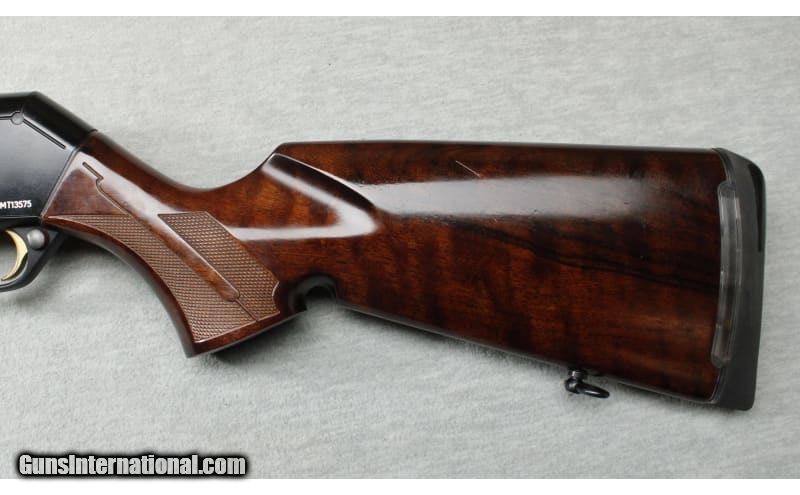 Description: Excellent condition, light wear & few small scratches. Browning semi auto hunting rifle, 20" barrel, blued metal, smooth action and adjustable sights. Checkered high gloss finish premium hardwood forend and butt stock with Browning recoil pad and sling swivel mounts. 9.3X62mm SOLD Chambers: Semi auto Metal Condition: Excellent Wood Condition: Excellent Bore Condition: Bright Barrels: 20 Triggers: Factory Stock Dimensions: 14" LOP Fore End: Checkered Butt Pad: Brwoning pad Sights: "Adjustable rear, red fiber front sights Item Location: La Vista, NE |