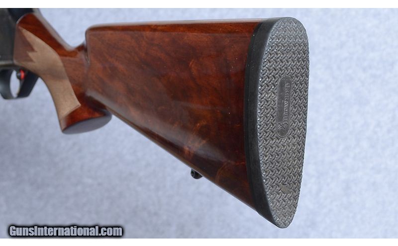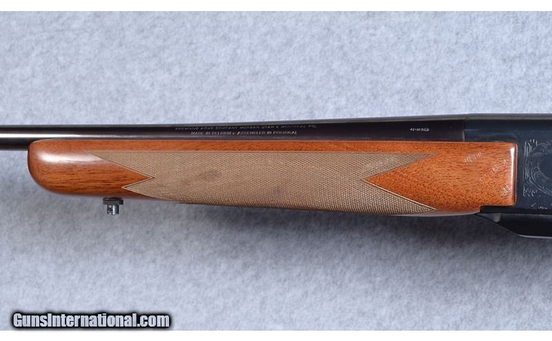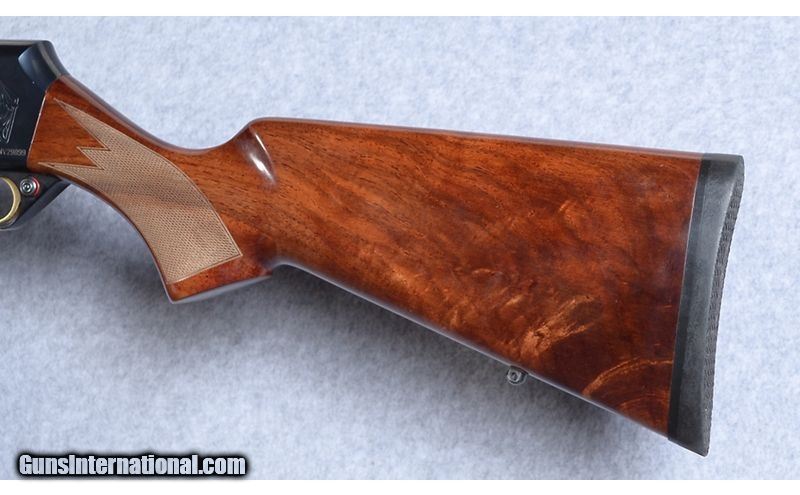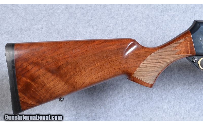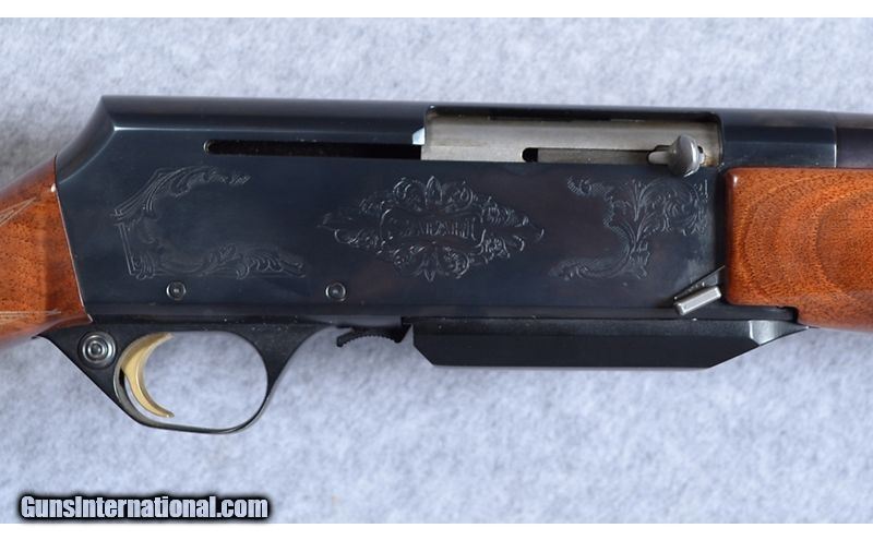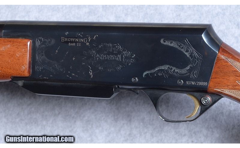 Description: Browning BAR Mark II Rifle — With classic looks and contemporary in performance, the BAR MK II Safari is the hunting rifle that sets the bar for every other autoloader on the planet. A hammer-forged barrel provides outstanding strength, lasting durability and precise accuracy. The Ballistic Optimizing Shooting System (BOSS) allows the shooter to tune the barrel to a specific load for optimal accuracy. The scroll-engraved ordinance steel receiver on the BAR MK II Safari is drilled and tapped for scope mounts to provide a rock-solid optics mounting platform. Gas-operated autoloader with a high-strength multiple lug rotating bolt that locks directly into the barrel. The seven-lug bolt and precise breech-to-chamber relationship give the BAR exceptional accuracy and the strength to handle modern magnum class cartridges. A strong, rigid action bar/inertia block link-up improves accuracy by reducing barrel vibration. The buffering mechanism reduces wear and stress on the rifle's mechanism for longer life and greater reliability. The bolt release lever is incorporated in the BAR's receiver for maximum reliability and ease of access, even when wearing gloves. The charging handle on the bolt is sculpted to give you a solid grasp without snagging on your clothing or rifle scabbard. Detachable Box Magazine With Unique Hinged Floorplate Generous Trigger Guard Opening For Easy Access Cross bolt Safety Design With Enlarged Head This rifle is in excellent condition and has seen very little use. .300 Winchester Magnum SOLD Metal Condition: Excellent Wood Condition: Excellent Bore Condition: Excellent Barrels: 22" polished blued barrel with BOSS (Ballistic Optimizing Shooting System) and 1 in 10" rifling Triggers: Browning gold-plated Stock Dimensions: 13¾" Length of Pull; ¾" Drop at Comb; 1⅛" Drop at Heel Fore End: Grade I Turkish walnut with 18 LPI checkering and sling swivel stud Butt Pad: Browning rubber recoil pad Weight: 8.75 lbs Sights: Drilled and tapped for riflescope mount Item Location: Boise, ID |