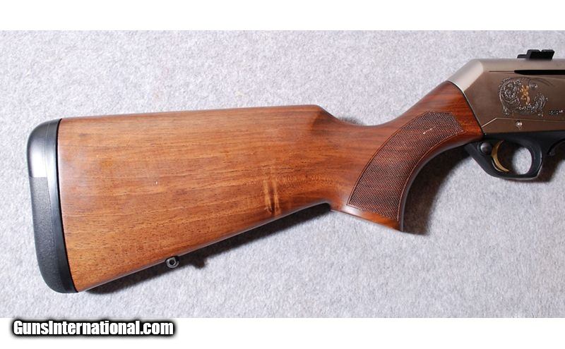 Description: Very nice Browning in .243 Win. With light handling marks. Bluing is excellent. Any imperfections in bluing in the photographs is glare. Jeweled bolt, and accent engraving on receiver complete the overall look of the rifle. .243 Winchester SOLD Metal Condition: Very good. Light handling marks on receiver. Wood Condition: Very good. Light handling marks on right hand checkering of pistol grip. Bore Condition: Excellent condition. Shiny and bright with strong rifling. Barrels: 22" Barrel. Triggers: Smooth trigger. Stock Dimensions: 13 3/4" LOP. Fore End: Checkered wood with small scratch on front near the mounting screw on the left side. Butt Pad: Rubber Inflex Technology pad. Weight: 7 Lbs 8 OZ Sights: "Scope bases. No rings, scope or fixed sights. Item Location: Rapid City, SD |