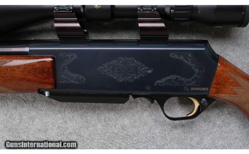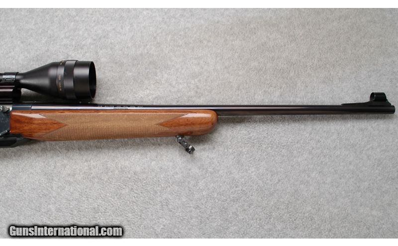 Description: .300 Winchester Magnum SOLD Chambers: Semi-auto repeater. Metal Condition: Very good. Wood Condition: "Very good, butt stock has been cut. Bore Condition: Very good. Barrels: "24"", blued. Triggers: Single. Stock Dimensions: 12 3/4" LOP. Fore End: Matching checkered walnut. Butt Pad: Rubber pad. Weight: 10 lb. 4 oz. Sights: Cabelas Alaskan 3.5-10x50mm Item Location: Dundee, MI |
