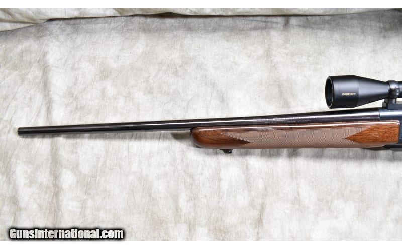 Description: Very nice Browning Safari BAR, manufactured in 2013. It features a better grade walnut stock, Nikon scope, and nice engraving on the flats. The stock has some handling marks, the metal has no defects of note. 7mm Remington Magnum SOLD Chambers: 4 Metal Condition: Excellent. Wood Condition: Very good. Bore Condition: A little dark but shiny and good rifling. Barrels: 24-inch Triggers: Factory trigger. Fore End: 13-5/8 inch LOP. Butt Pad: Soft rubber pad. Weight: 9 lb Sights: Set up for scope and outfitted with Nikon Pro-staff 3-9x scope. Item Location: Rogers |