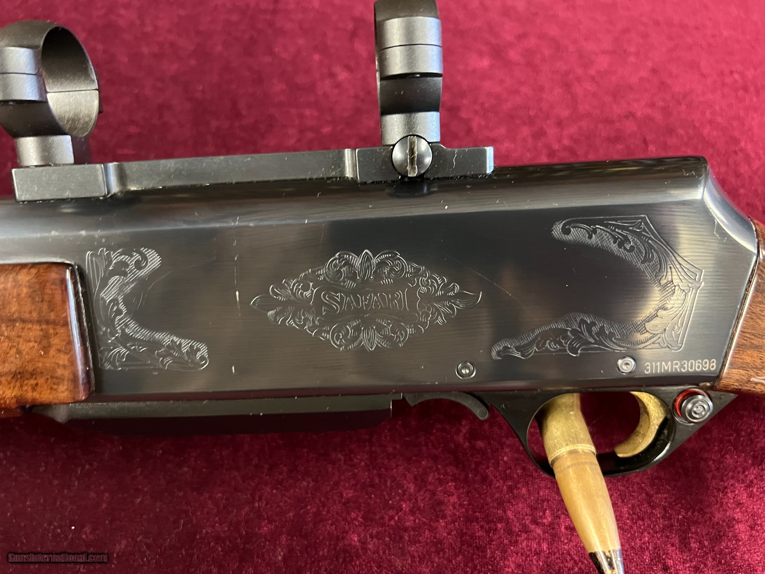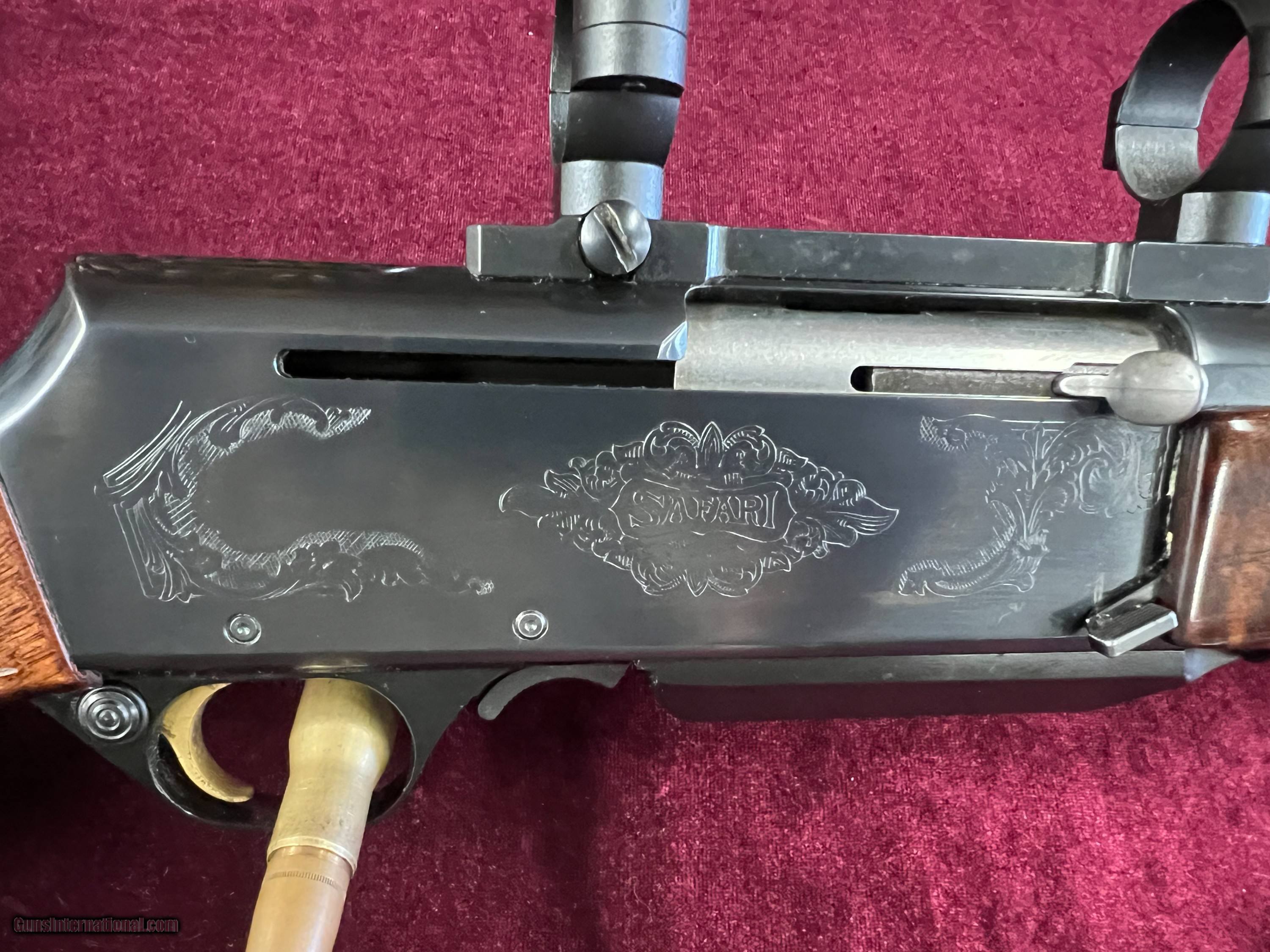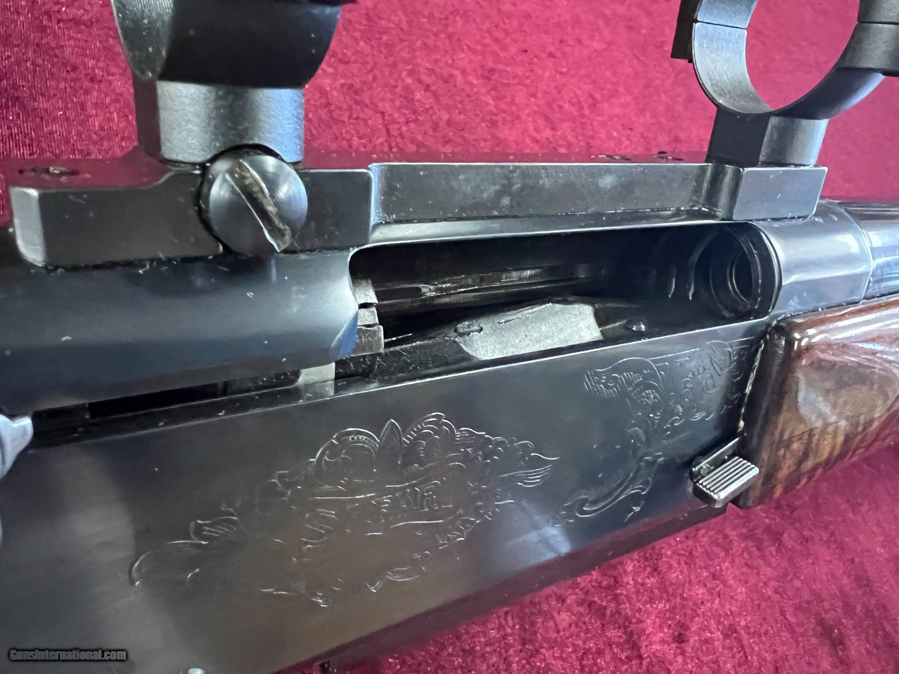 Description: Hello all. In this listing we are selling a Belgium Browning BAR Safari. This semi-automatic rifle is chambered in 338 Win Mag sporting a 24" barrel, not including the muzzle break. The bluing is 99% with the wood at 99%. The gun also comes with Leupold bases and rings. The serial number is 311MR30698. If you have any questions or would like additional photos, please feel free to contact us. Buyer pays shipping. We charge 3% on all card transactions. We are selling this gun for the very low price of $1295. SOLD Rifle Caliber: .338 Winchester Magnum Manufacturer: Browning - Belgium Model: BAR Safari Serial Number: 311MR30698 Barrel Length: 24 |