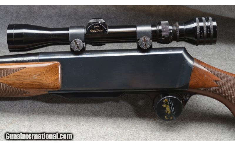 Description: SOLD Caliber Info: .30-06 Springfield Metal Condition: Very good. Used but well-maintained. Wood Condition: Very good to excellent, with shallow scratches on the stock. Bore Condition: Bright and shiny. Barrels: 22 Inch Stock: Checkered walnut, pistol grip Stock Dimensions: 13-5/8 inch LOP Fore End: Matching checkered walnut Butt Pad: Black Browning plate Weight: 8 lb. - 3 oz. as shown with scope Sights: Gold bead and folding leaf open sights. Set up for your choice of scope. Outfitted with a Redfield 2x-7x scope Extras: Scope, one magazine total Item Location: Rogers,, MN |