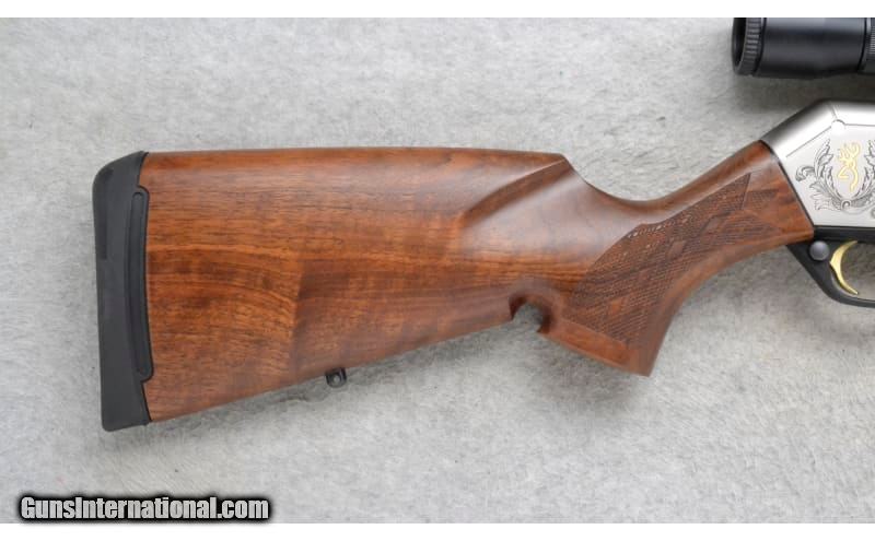 Description: This Browning Model Short Trac is a right hand semi-auto rifle in .270 WSM Cal. Only. It has a 24 inch barrel. It is outfitted with a Nikon Monarch UCC 4-12x40 Scope. The butt stock is a diamond checkered grip walnut pistol grip. The forearm is a diamond checkered grip walnut. .270 WSM SOLD Chambers: Hidden detachable magazine. Metal Condition: Excellent. Wood Condition: Excellent. Bore Condition: Excellent. Barrels: 24 inch. Stock Dimensions: LOP 13 1/2 inches. Fore End: Checkered grip walnut with finger grooves. Butt Pad: Black rubber recoil pad. Weight: 8 lb. 10 oz. Sights: Nikon Monarch UCC 4-12x40 Scope. Item Location: Richfield, WI |