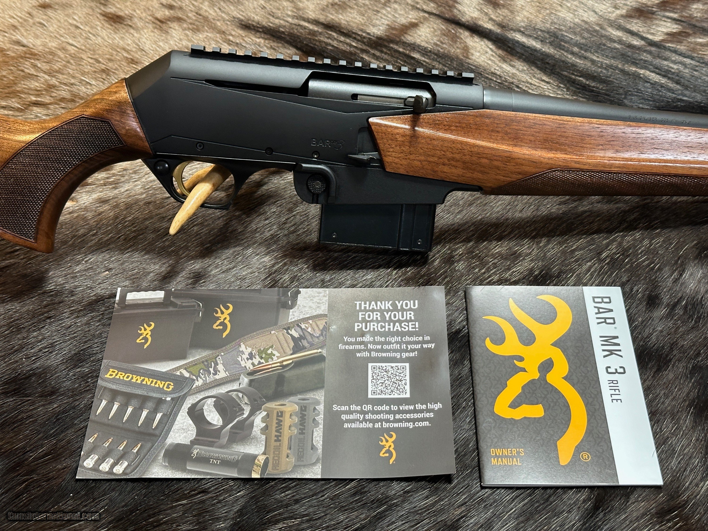 Description: NEW BROWNING BAR MARK 3 DBM RIFLE IN 308 WINCHESTER WITH GOOD TURKISH WALNUT STOCK - LAYAWAY AVAILABLE. UNLIKE OTHER SELLERS, JD OUTFITTERS DOES NOT FALSELY CLAIM TO HAVE “INVENTORY” BUT THEN DROP-SHIPS SOME UNKNOWN AND UNSEEN RIFLE FROM A THIRD-PARTY WAREHOUSE. NOR DOES JD OUTFITTERS USE STOCK OR GENERIC PHOTOS. THE RIFLE YOU SEE IS IN INVENTORY, READY TO SHIP, AND IS THE RIFLE YOU WILL RECEIVE! FREE AFRICAN SAFARI WITH KUCHE SAFARIS (: KUCHE.CO.ZA) INCLUDED WITH THIS RIFLE! SAFARI IS FOR 1-HUNTER / 5-DAYS / 3-ANIMALS (IMPALA, BLESBUCK, WARTHOG). SAFARI IS CUSTOMIZABLE WITH AS MANY ADDITIONAL DAYS AND ANIMALS AS YOU WANT. THE CERTIFICATE IS GOOD FOR 3-YEARS FROM DATE OF PURCHASE AND WILL BE EMAILED TO YOU. NOTE: THE SAFARI IS FREE AND DOES NOT ADD ANY COST TO THE RIFLE. BUY A SCOPE AND RINGS/BASES FROM JD OUTFITTERS AND RECEIVE FREE MOUNTING. Features Of This Great BAR RIFLE Include: