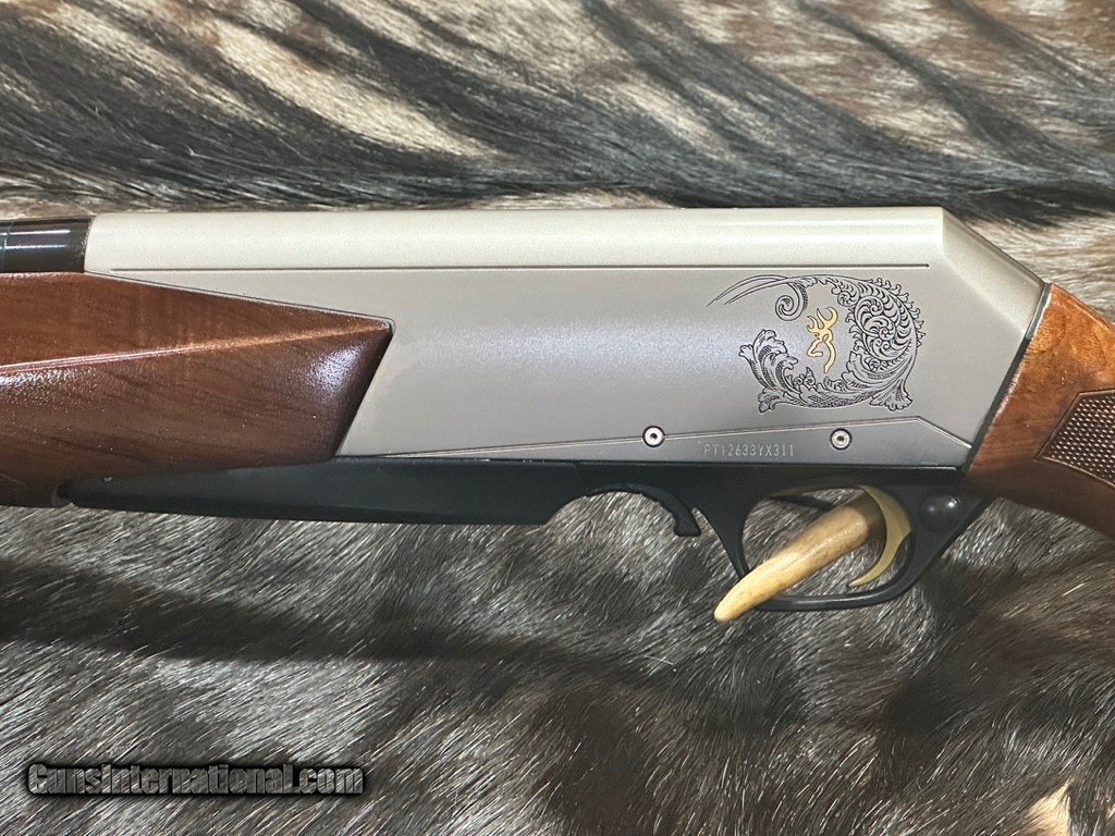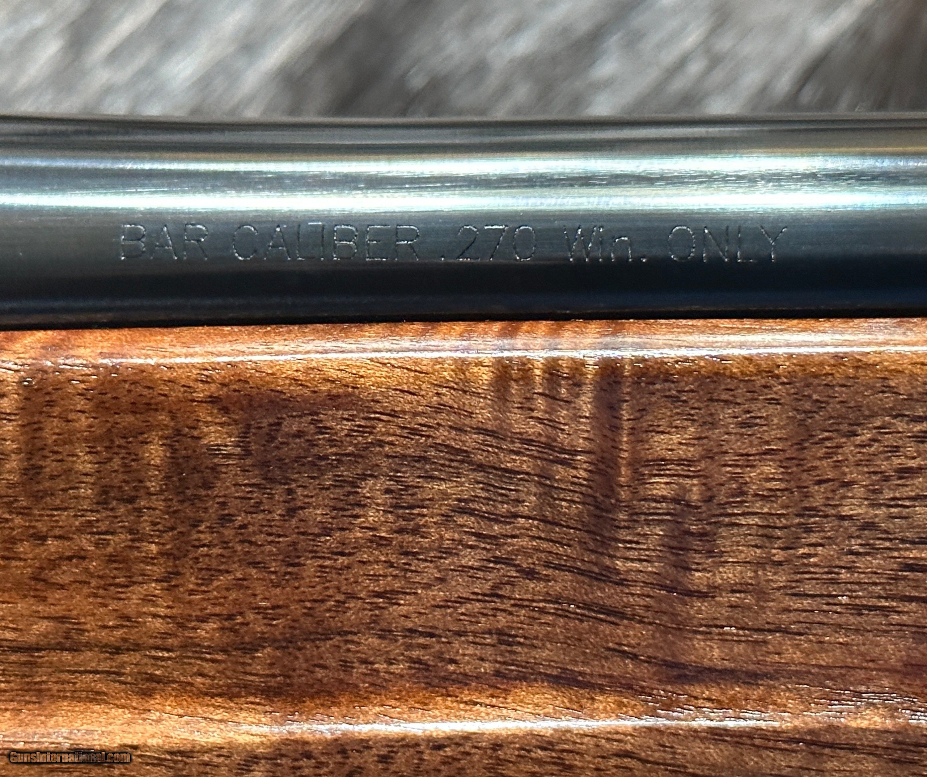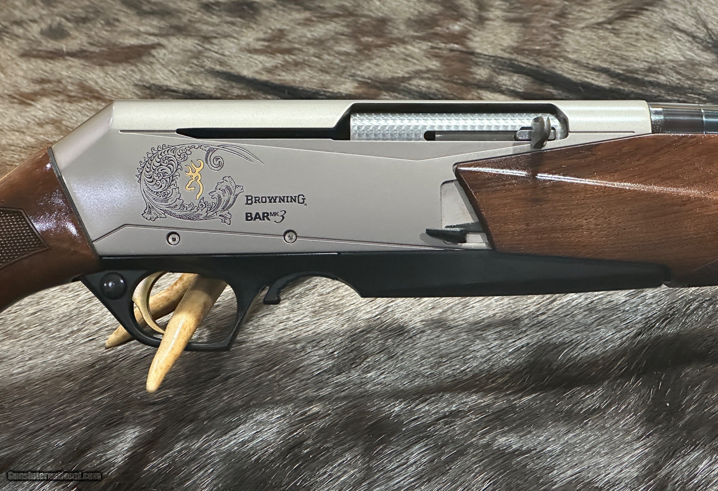 Description: NEW BROWNING BAR MARK 3 NICKEL ENGRAVED RIFLE IN 270 WINCHESTER WITH GREAT WOOD STOCK - LAYAWAY AVAILABLE. UNLIKE OTHER SELLERS, JD OUTFITTERS DOES NOT DROP-SHIP FROM A THIRD-PARTY WAREHOUSE OR USE STOCK, GENERIC PHOTOS. THE RIFLE YOU SEE IS IN INVENTORY, READY TO SHIP, AND IS THE RIFLE YOU WILL RECEIVE! FREE AFRICAN SAFARI WITH KUCHE SAFARIS (KUCHE.CO.ZA) INCLUDED WITH THIS RIFLE! SAFARI IS FOR 1-HUNTER / 5-DAYS / 3-ANIMALS (IMPALA, BLESBUCK, WARTHOG). ADDITIONAL DAYS, ANIMALS MAY BE ADDED AS DESIRED. CERTIFICATE PROVIDED UPON PURCHASE. NOTE: THE SAFARI IS FREE AND DOES NOT ADD ANY COST TO THE RIFLE BUY A SCOPE AND RINGS/BASES FROM JD OUTFITTERS AND RECEIVE FREE MOUNTING. Features Of This Great BAR RIFLE Include:
