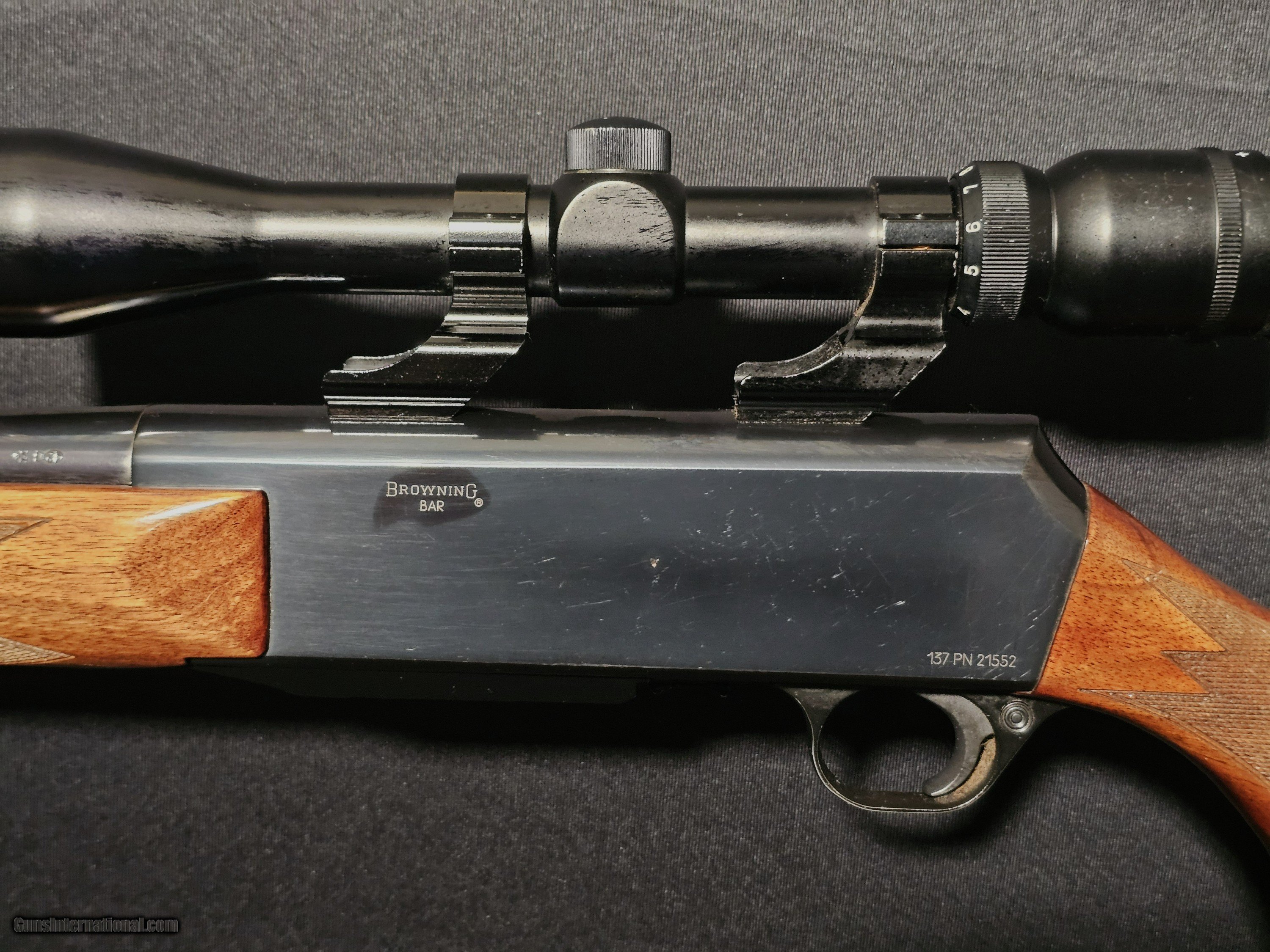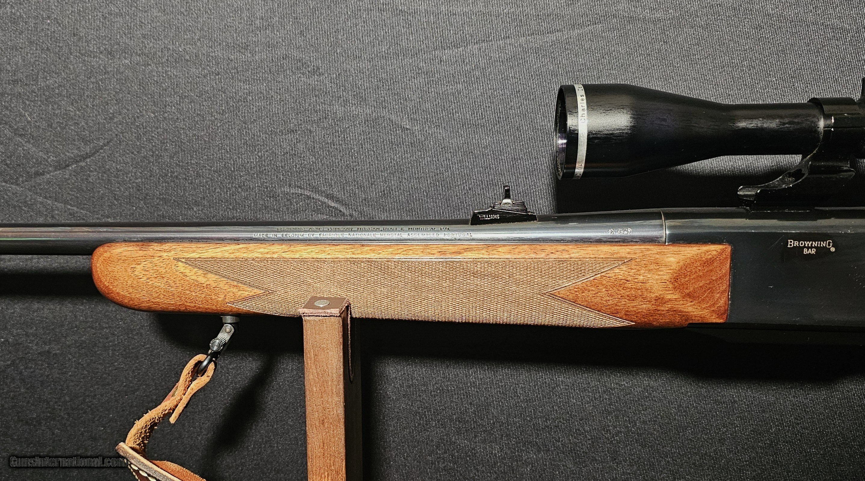Description: Very hard to find Belgium made BAR in the .280 Remington. This rifle weights 9 LB 2 OZ with 22'' barrel. L.O.P. of 13 3/8''. Includes scope, rings, base, and sling. Sorry no magazine. Terms and Conditions: