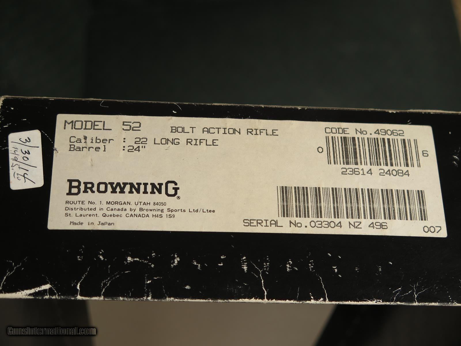 Description: Browning 52 22LR. 22 inch barrel. NZ date code. 98% in original box with Browning mounts, rings and papers. Over 45 years in business, and not only do we buy guns, but we accept collections (and single/multiple guns) on consignment. SOLD |