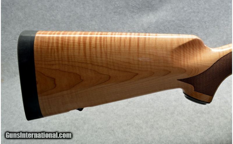 Description: Sweeter than maple syrup. And that is pretty sweet. The look of a Model 70 with a AAA Maple stock, embellished with classic ebony tip, along with a shadowline cheekpiece is hard to resist. Maple may seem retro to some, but this is beyond retro -- is ther such thing a neo retro? It looks better than any Maple-stocked rifle before. Take it to the range and get the surprise of your life. You will be surrounded with admirers. But it is not just a show gun, it shoots very, very well. With its M.O.A. trigger system and solid Pre-64 action it is a tack driver that can take tough hunting in stride. You have wanted one of these for a long time. Put one on your list and make it happen. SOLD Caliber Info: .308 Metal Condition: Excellent Wood Condition: Excellent Bore Condition: Excellent Barrels: 22 Inches Stock: AAA Grade checkered maple Stock Dimensions: Leangth of pull 14 1/2 inches Fore End: AAA Grade checkered maple Butt Pad: Rubberized cushioned Weight: 7.90 Lbs. Sights: Mounting screws Extras: Rifle comes as is with no extras Item Location: Farmington, UT |