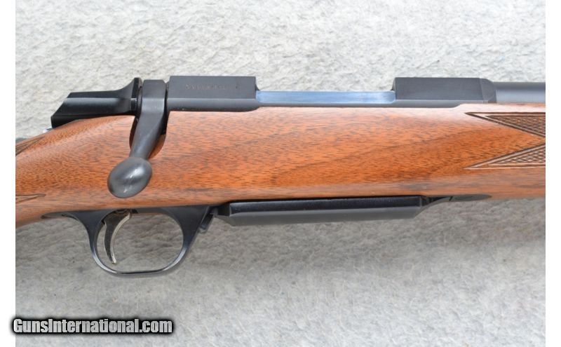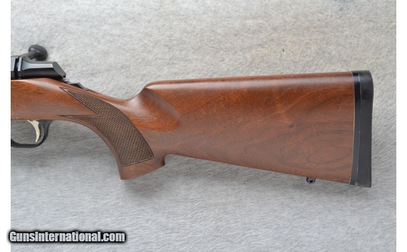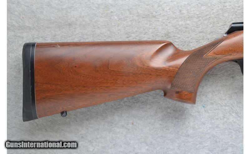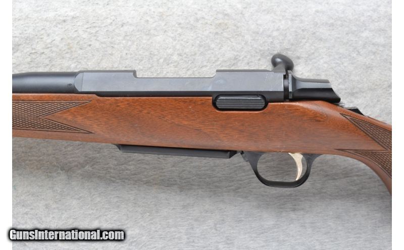 Description: This Browning Model A-Bolt is a right hand bolt action rifle in .300 WSM Cal. Only. It has a 22 inch barrel. It is drilled and tapped for a scope mount. No iron sights. The stock is a checkered grip walnut pistol grip butt and forearm. SOLD Manufacturer: Made in Japan/Miroku Caliber Info: .300 WSM Only Chambers: Bolt Action 4 round hidden detachable magazine. Metal Condition: Excellent with a couple of minor handling marks. Wood Condition: Very good. Minor handling marks. Bore Condition: Excellent. Barrels: 22 inch matte black barrel. Triggers: Grooved Golden. Stock: Checkered walnut pistol grip. Stock Dimensions: LOP 13 1/4 inches. Fore End: Checkered grip walnut. Butt Pad: Browning black rubber pad. Weight: 6 lbs. 6 oz. Sights: Drilled and tapped for a scope mount. No iron sights. Extras: Comes in a box. Sling swivel studs. Item Location: Richfield, WI |