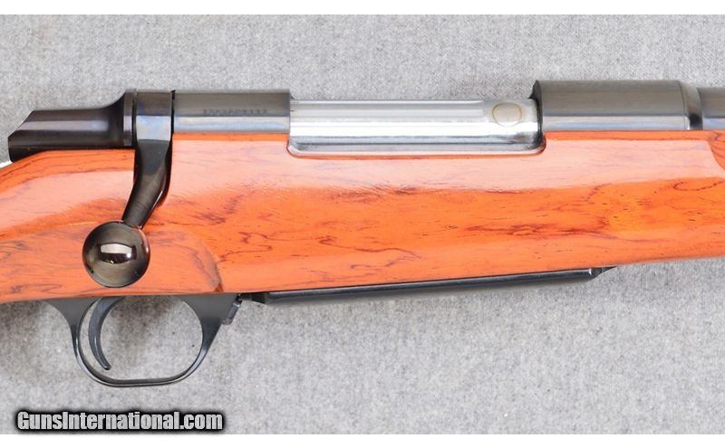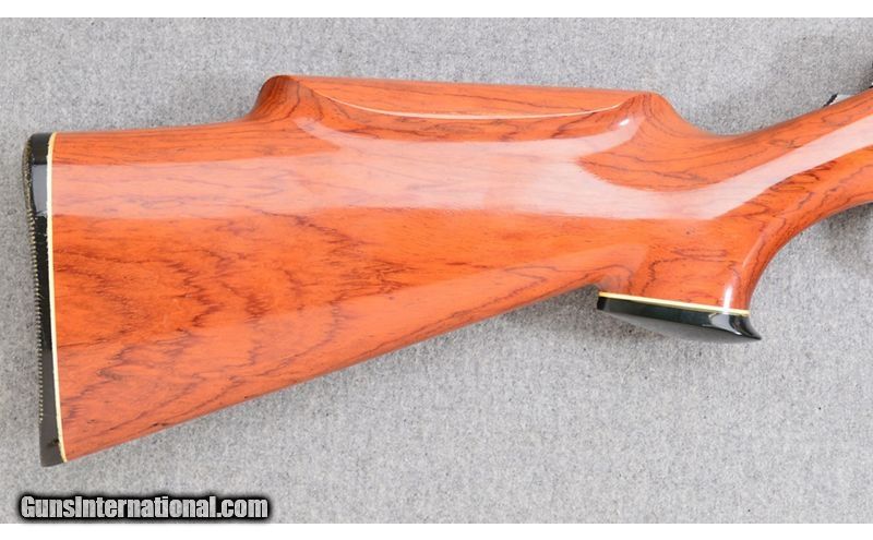 Description: For your consideration, a Browning BBR in .300 Winchester Magnum. This piece is stocked in a bubinga wood Reinhart Fajen Aristocrat stock with black forend tip and oversized grip cap. The metal condition would otherwise be excellent were it not for a patch of finish loss depicted in the images above. Year of production: 1984. .300 Winchester Magnum SOLD Metal Condition: Very Good Wood Condition: Excellent Bore Condition: Excellent Barrels: 24 Triggers: Serrated Face Stock Dimensions: 14" LOP Butt Pad: Black Plastic Weight: 8 Lbs 2 oz Sights: None Item Location: Hamburg, PA |