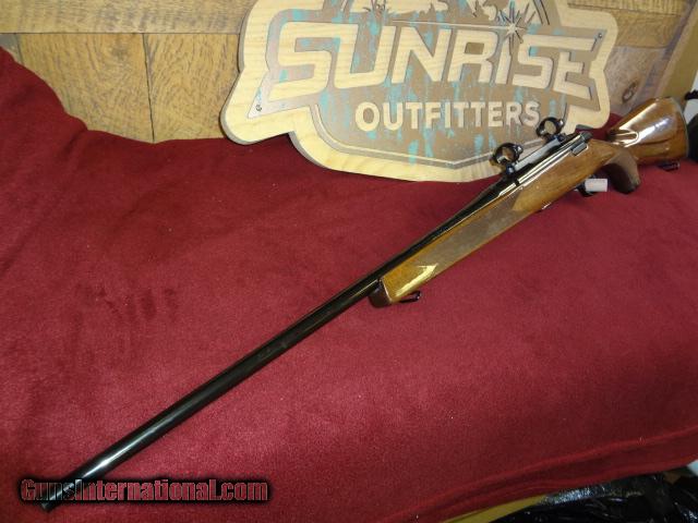 Description: Browning 7mm magnum with a 24" barrel with Browning base and rings. This rifle was made in 1979. It has about 98% plus blue remaining, the wood has no cracks, just a few minor dings from handling. A small scratch is on the bottom of the forearm. Comes with the original sling swivles. Very good shooter. SOLD |