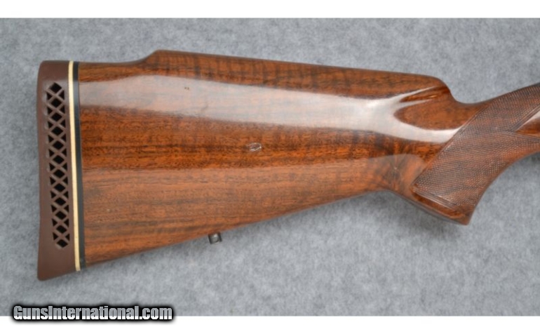 Description: Made in Belgium SOLD Manufacturer: SN: 4L 1XXX Caliber Info: .375 H&H Magnum Metal Condition: Generally good with a few nicks and scratches Wood Condition: Shows some wear as nicks, dings and scratches Bore Condition: Sharp grooves and bright lands Barrels: 24 Stock: Checkered hardwood Stock Dimensions: LOP: 13 1/2 Fore End: Checkered hardwood Butt Pad: Browning brown pad Weight: 8 lbs., 4 oz. Sights: Front hooded blade, rear notch. Also has scope bases installed Item Location: Christiana, DE |