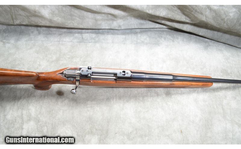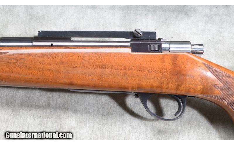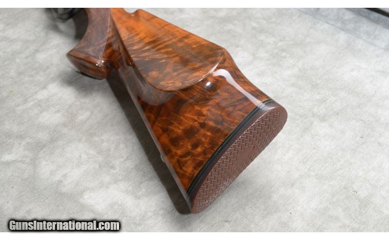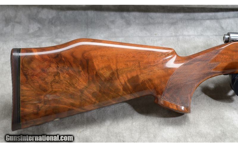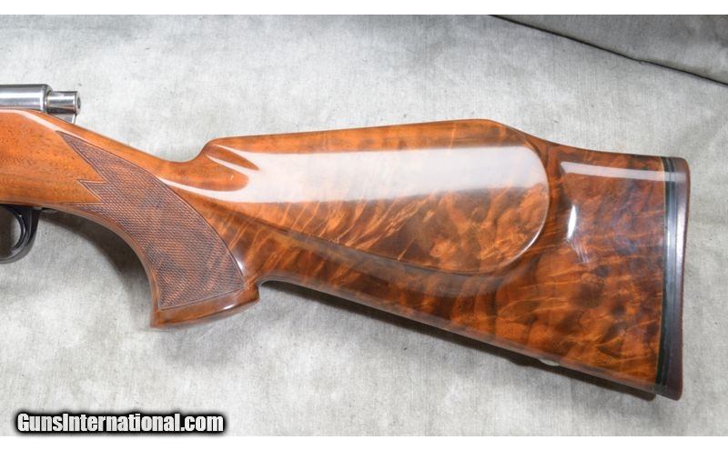 Description: The wood on this rifle is gorgeous, having fiery grain with lots of figure. It has Monte Carlo pattern stock with rolled over comb and checkered pistol grip. I features a 22 inch barrel that is scope ready and is in excellent condition. .22-250 Remington SOLD Chambers: Internal magazine with hinged floor plate. Metal Condition: Excellent with only faint evidence of use. Wood Condition: Excellent. There are a couple of tiny handling marks. The checkering is crisp and sharp. Barrels: 22 Inch - blue, without sights. Triggers: Factory grooved trigger. Stock Dimensions: 13 - 1/4 Inch LOP. Butt Pad: Rubber pad. Weight: 7lbs 13oz Sights: Ready for your choice of scope. Item Location: Chesterfield, MI |