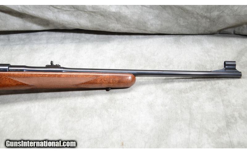 Description: This FN Browning rifle features a Monte Carlo walnut stock with very nice grain. It has a Mauser type claw extractor and "in the white" bolt. The blue barrel has a hooded bead foresight and notch rear sight. The receiver is drilled and tapped for your choice of scope. SOLD Manufacturer: 1973 based upon the serial number 65xxxL73. Caliber Info: .30-06 Springfield. Chambers: 3-round internal magazine with hinged floor plate. Metal Condition: Excellent. The muzzle blue is worn. Wood Condition: Excellent. There are few signs of use. Bore Condition: Shiny and bright. Barrels: 22 Inch - blue, with open sights. Triggers: Grooved factory trigger. Stock: Monte Carlo walnut with cheek piece. Stock Dimensions: 13 - 5/8 Inch LOP. Butt Pad: Black plate. Weight: 7 lb. - 10 oz. Sights: hooded bead and notch open sights. Drilled and tapped for scope. Extras: Box. Item Location: Rogers,, MN |