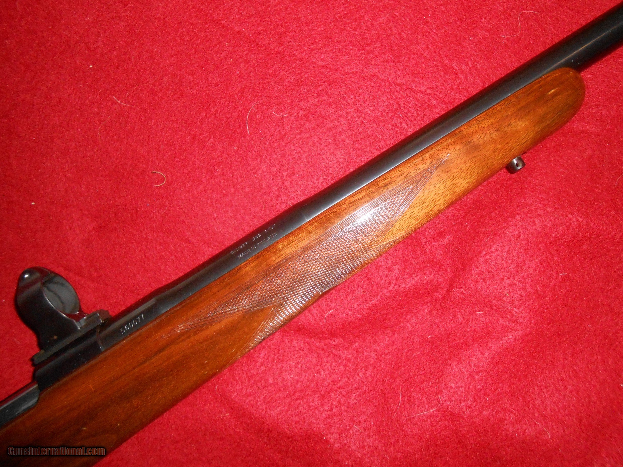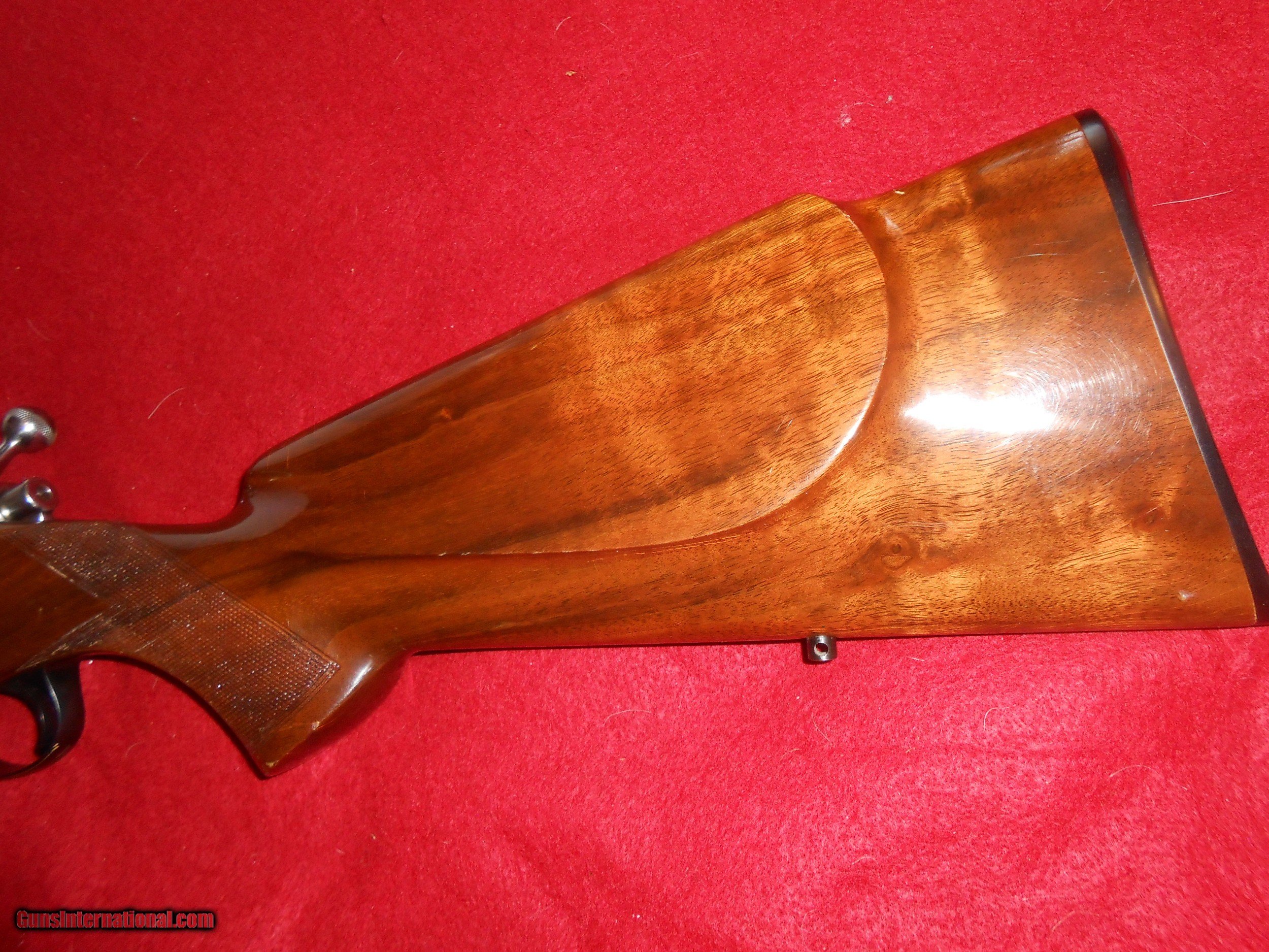 Description: Offered is a 1967 vintage Browning, Safari Grade .222 Remington cal. rifle. A fantastic varminter that will group under .5 inch consistantly. This rifle is one of only 6,000 ever imported into the U.S. in the 1960's. They were imported in 2 calibers, .222 Remington, and .222 Remington Magnum. Action is a Sako Flat latch vintage unit. Wood has nice color and some fiddleback grain. Medium heavy barrel is 24 inches long. (not pencil contour) Overall condition is 99%. Blue is near 100%. Stock only has very few small handling marks, no cracks in the finish. Condition is better in person than in photos. I can send more photos, if desired. The scope rings/bases are vintage Kimber quick detachable. I can include a like new Leupold 6.5X20X40 scope for an additional $750.00. SOLD Curio/Relic: Yes Manufacturer: Browning Arms Model: Safari Grade Serial Number: 56XXY7 Caliber Info: .222 Romington Condition: Excellent Metal Condition: 99.9% Wood Condition: 99% Bore Condition: Excellent Barrels: 24 inch Barrel Type: Medium Varmint Action: Sako Bolt Triggers: Sako Stock: Walnut Butt Pad: Browning Factory Finish: Blue Sights: None Manufacture Date: 1967 Engraving: Factory Item Location: Oregon |