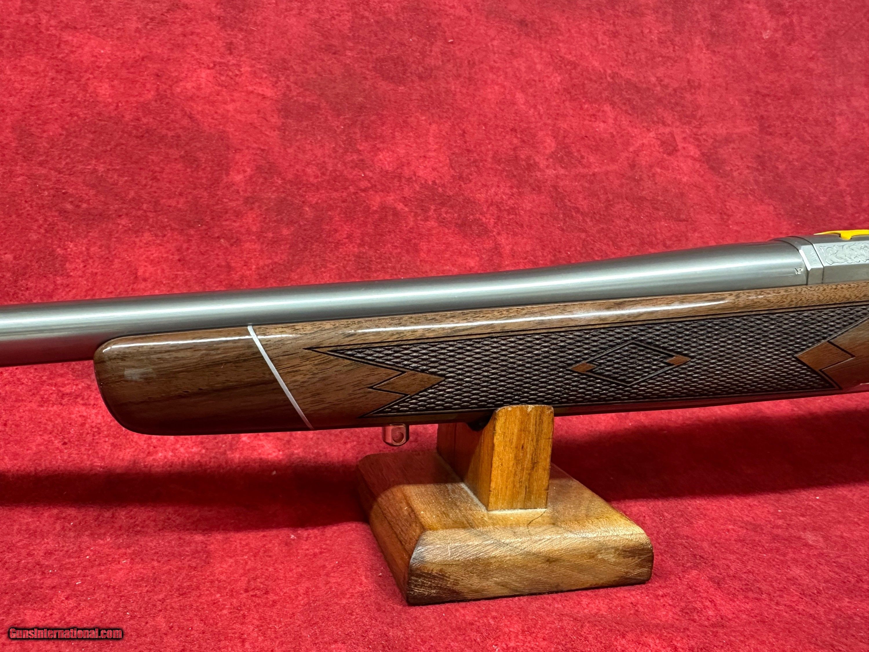 Description: Browning X-Bolt 2 White Gold Medallion 270 Win 22" Polished Gray Threaded Barrel,Monte Carlo w/Rosewood Forend Tip Grade V/VI Walnut Stock, Radial Muzzle Brake (036007224) This rifle is brand new in the box. The Browning X-Bolt 2 White Gold Medallion features a handsomely finished Grade III/IV American walnut Monte Carlo style stock with rosewood caps and a gloss finish. Polished stainless steel receiver with gray finish and scroll engraving. Sporter stainless steel, threaded barrel with radial muzzle brake. X-Lock Scope Mounting System uses four screws per base for rock-solid attachment to the receiver. Brand Browning Category Rifles Series White Gold Medallion Model X-Bolt 2 Caliber 270 Win Barrel Length Range 22" to 22.99" Stock Finish Group Brown Capacity 4+1 Stock Material Wood Action Bolt Long Action OAL 42.75" Sights None Barrel Finish Polished Gray Barrel Material Stainless Muzzle Radial Muzzle Brake Twist 1:10" Receiver Description Drilled & Tapped Trigger Pull Weight 3.50 lbs Drop 3 / 4" Comb & 1 7 / 16" Heel Receiver Material Stainless Steel Thread Pattern M13x0.75 Stock Description Monte Carlo w / Rosewood Forend Tip Barrel Description Threaded Barrel Length 22" Length of Pull 13.63" Max Capacity 4 Receiver Finish Polished Gray Trigger Adj Deluxe Weight 6.12 lbs Stock Finish Grade V / VI Walnut Check out our and use our Facebook link to like our page. Watch Facebook for Specials and new arrivals. Firearms will need to be transferred through a FFL holder. Buyer to pay $65.00 S&H to lower 48. Prices reflect cash discount. There will be 3% added to credit card sales. Email us with any questions or call 1 if we don't get back to you within 24 hours, either we didn't get your email, or you are not getting ours(we try to answer all our emails as quick as possible). Over 2500 guns on hand, contact us for any of your needs. If we don't have what you want, we can try to find it. Rifle Caliber: .270 Winchester Manufacturer: Browning Model: X-Bolt 2 Barrel Length: 22 Condition: Brand New Price: $1,599.00 Buy Now Contact Seller |