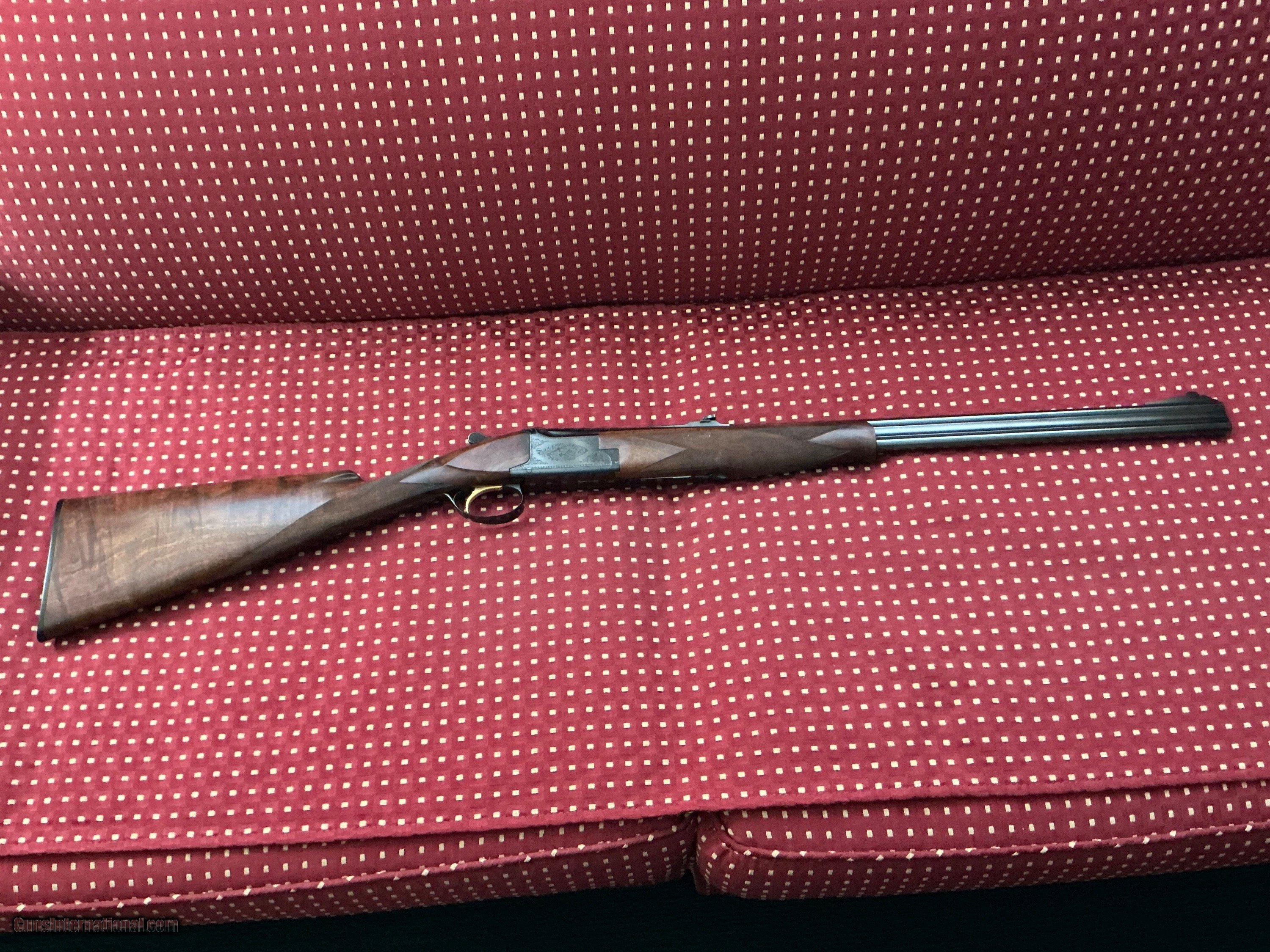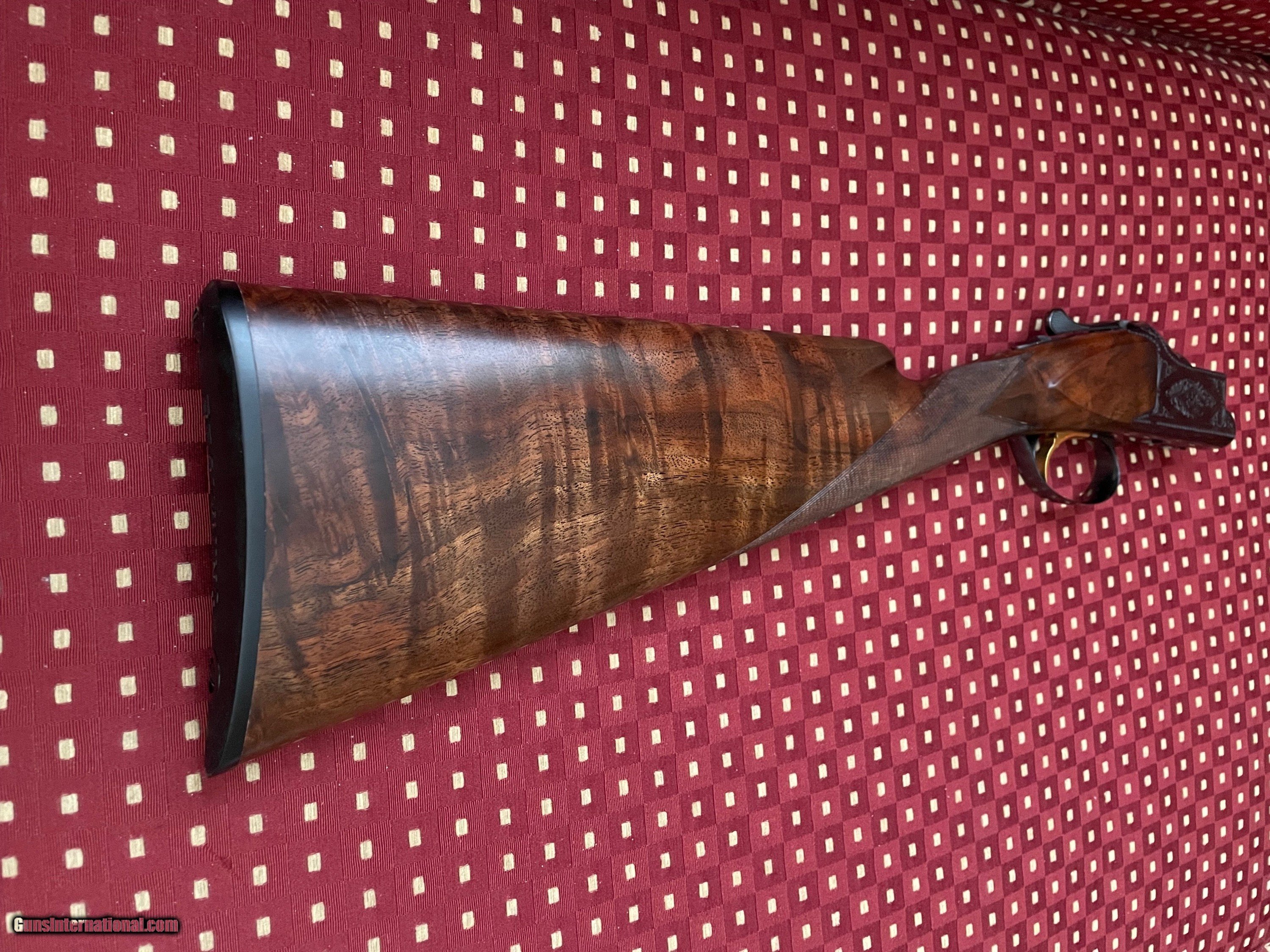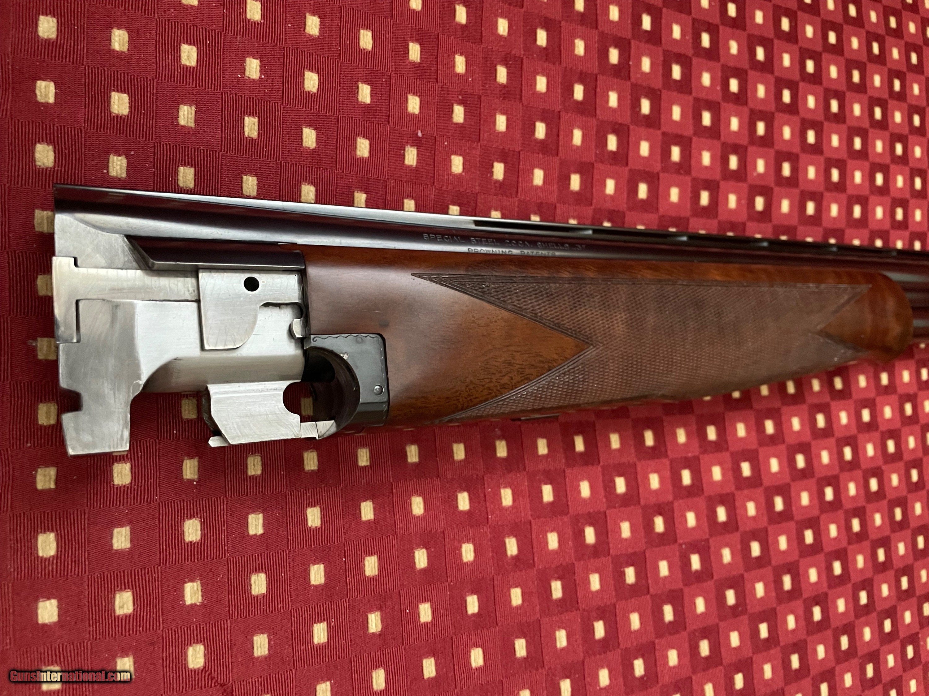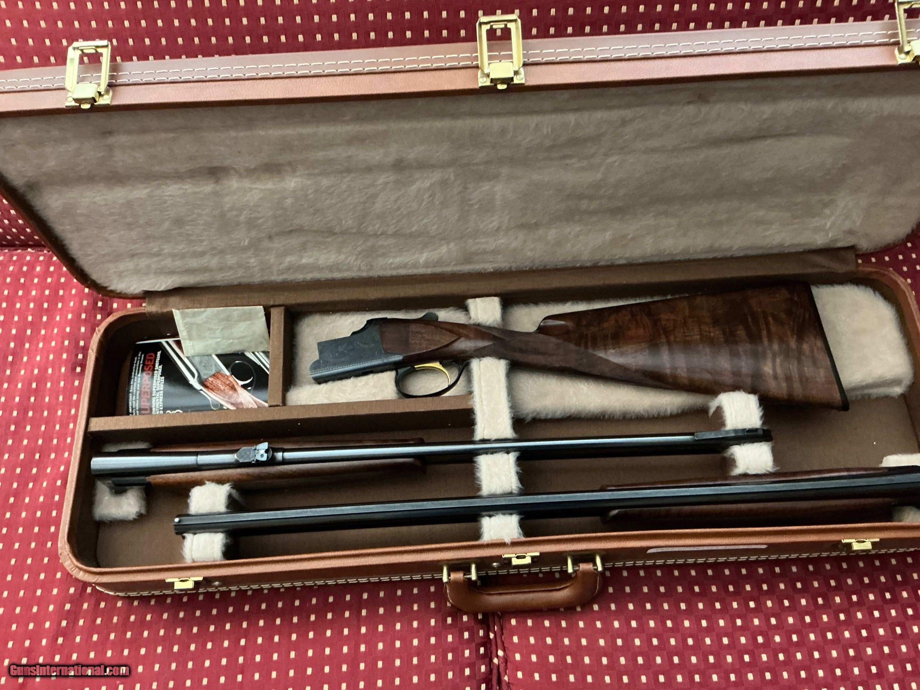 Description: Browning Continental set containing a 30-06 cal. Rifle set of barrels and a 20 ga. Shotgun set of barrels. Rifle barrels are 24 in. length and Shotgun barrels are 26 1/2 in. length with 3 in. chambers. Built in the Superlite configuration, This set is in mint condition, probably unfired since leaving the factory. The highly figured wood is as good as any I have seen of these sets. In the early 80,s the continental set cost $6,000., over 40 years ago! These sets are quite rare, only 734 were ever produced. Comes in the mint factory case with the manual and keys. This set is as good as it gets. shipping costs $70. SOLD |
