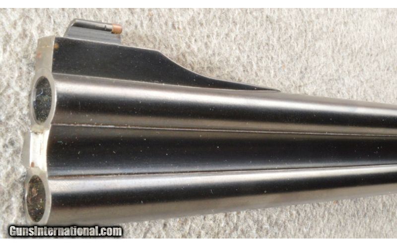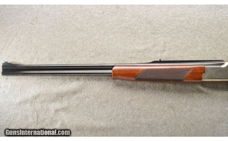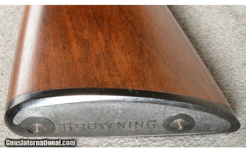 Description: This is a fine looking and very nice Browning Model 325 Custom rifle. The blue steel barrels with ramped beaded blade front and fixed notch rear sights on a raised quarter rib, left side of barrel marked "DECONINCK FRERES WARNETON BELGIQUE", "WOODCOCK HILL BENTON PA" marking on the underside of the barrels, standard Belgian proofs on the barrels and chambers, matching serial number, Browning style choke marks on the chambers, and Miroku factory proofs on the lug recess. Coin finished receiver with standard Grade I engraving, gold washed single trigger, and tang mounted safety/selector switch. Checkered walnut straight grip stock and Schnabel forearm with Browning butt plate. Stock measurements are: drop at comb 1 3/8 inches; drop at heel 2 3/8 inches; length of pull 14 inches. Unknown SOLD Chambers: Over/Under express rifle with ejectors. Metal Condition: Very fine as professionally assembled with 99% original blue finish on the barrels and a small area of minor nicks on the top barrel at the front of the forearm, some handling marks, and some slight edge wear on the trigger. Wood Condition: The wood is excellent with sharp checkering and just a few small dings. Bore Condition: Bright and shiny. Barrels: 25.5 inch blue O/U with sights. Triggers: SST gold color trigger. Stock Dimensions: 14 inch LOP. Fore End: Nice grade II-III walnut with checkering and a schnable. Butt Pad: Browning black butt plate. Weight: 7 Lbs. 4 Oz. Sights: Ramped beaded blade front and fixed notch rear sights on a raised quarter rib. Item Location: Owatonna, MN |