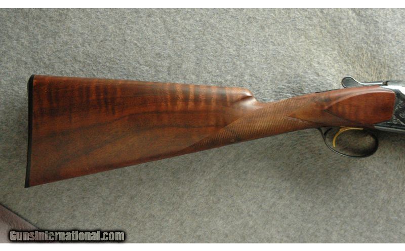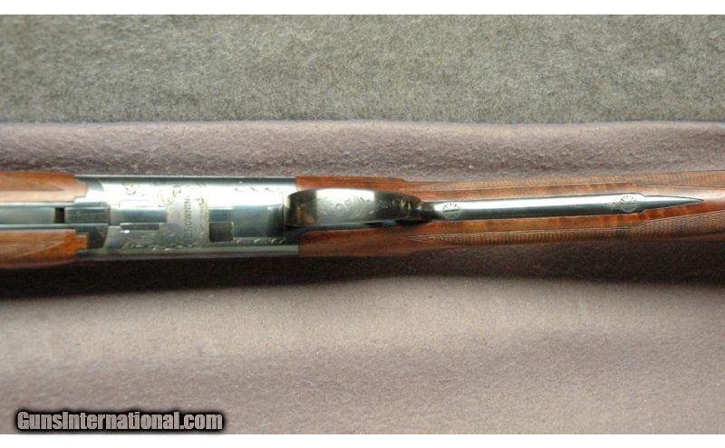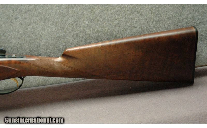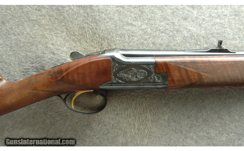 Description: Browning ExpressRifle .30-06. This double rifle is built for close range hunting where fast handling characteristics are very important. These rifles were manufactured in 3 calibers only - .270 Win, .30-06, and 9.3x74R. Built in 1981, which is the first year of production (discontinued in 1986), this rifle features a reinforced Superlight frame, auto-ejectors, and gold plated single select trigger (SST). Checkered, highly figured straight grip stock and forearm made from black walnut. Receiver has fleur-de-lis grade I engraving. .30-06 Springfield SOLD Chambers: Over / Under. Metal Condition: Appears as new. Wood Condition: Appears as new. Barrels: 24". Triggers: Factory gold plated single select trigger (SST). Stock Dimensions: 14" LOP. Fore End: Black walnut. Butt Pad: Factory butt plate. Sights: Iron sights. Item Location: Mitchell, SD |