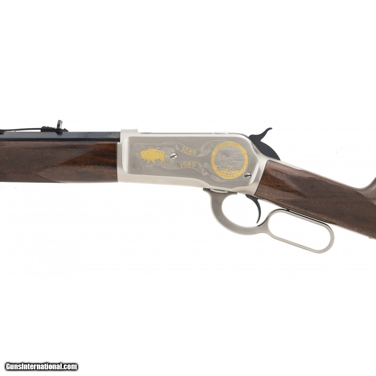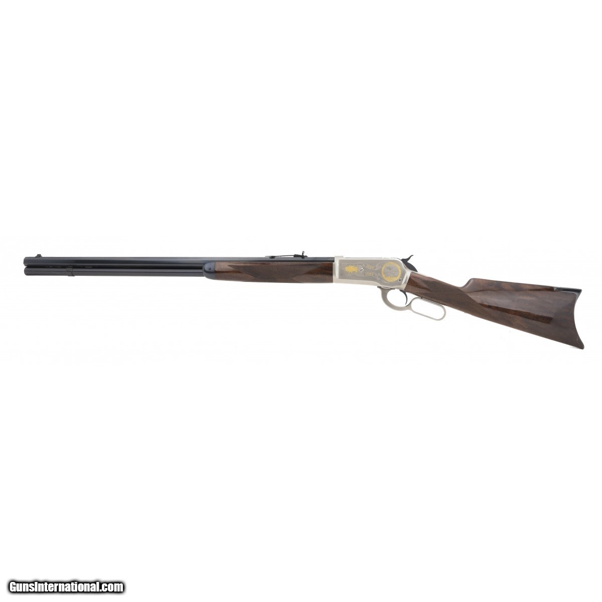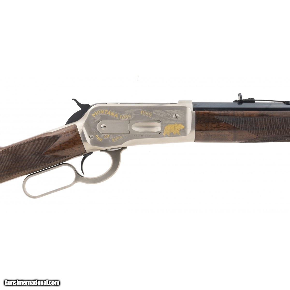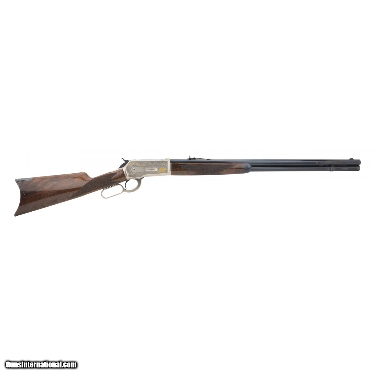 Description: " Limited Edition Montana Deluxe 1886 rifle with nicely figured walnut stocks and satin nickel receiver with gold inlays. 26"" barrel has some finish loss near front sight. Stocks have some wear, otherwise very good overall condition. SOLD |