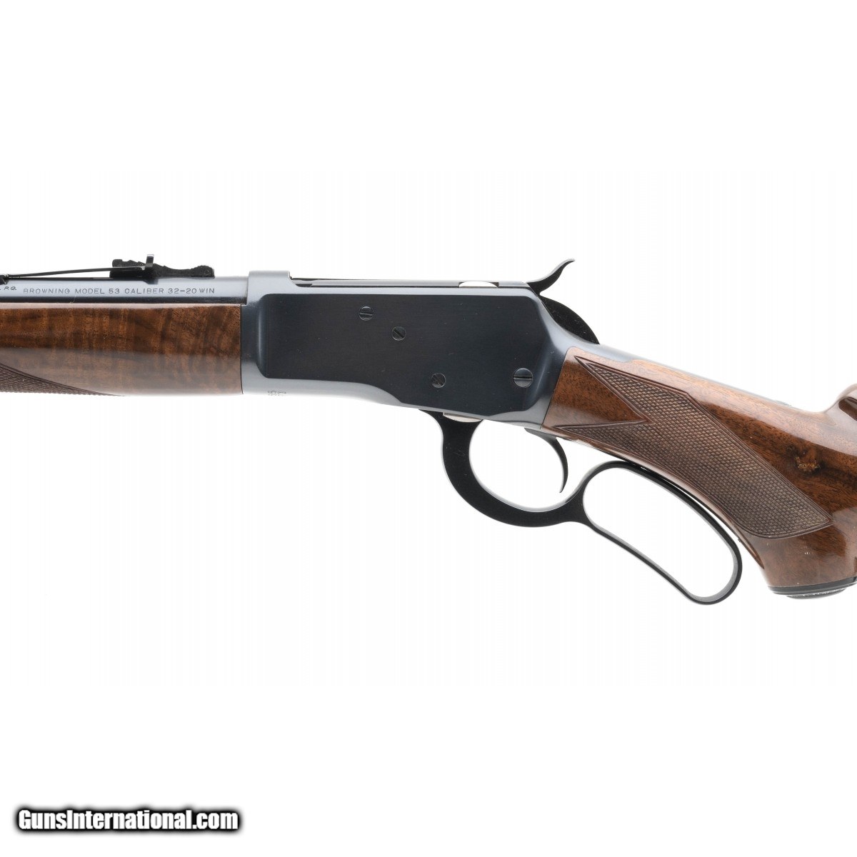 SN: 02455NM3F7. Manufactured in 1990, .32-20 Winchester with 22"" barrel. Japanese made lever action rifle with buckhorn rear sight and high gloss wood stock. Overall excellent condition.