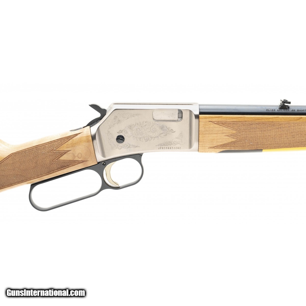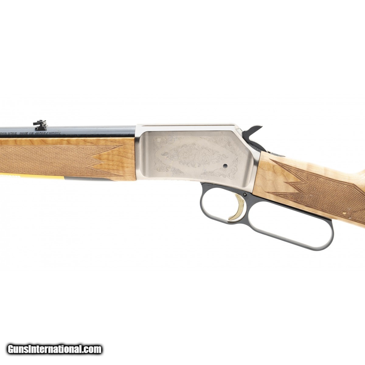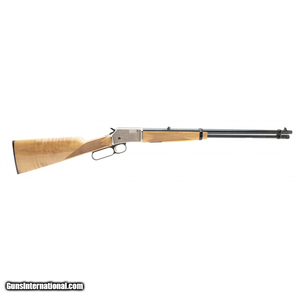 Lever action scroll engraved 20"" blued barrel in a light maple walnut checkered stock. NEW. UPC: 023614735021