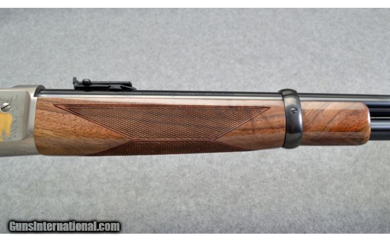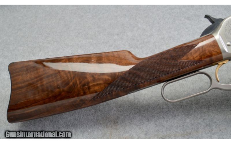 Description: This firearm does not show any field use. It has little signs of any use. This 1886 is a great example of Browning arms with Gold inlayed animals. Take a piece of history home with you that hasn't seen the hard knocks. SOLD Caliber Info: .45-70 Government Metal Condition: Excellent with light silvering on magazine cap near muzzle. Wood Condition: Excellent with a few light handling marks mostly near butt of firearm. Bore Condition: Excellent, bright and sharp Barrels: 22 Inches Stock: Straight hand stock with checkering Stock Dimensions: LOP 13 ¼ Inches Fore End: Slight tapered walnut with checkering Butt Pad: Black metal crescent butt plate Weight: 8 Lbs. Sights: Front blade with rear adjustable notch Item Location: Farmington, UT |