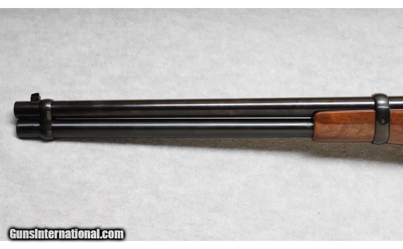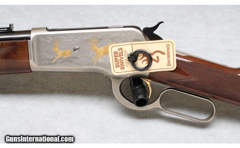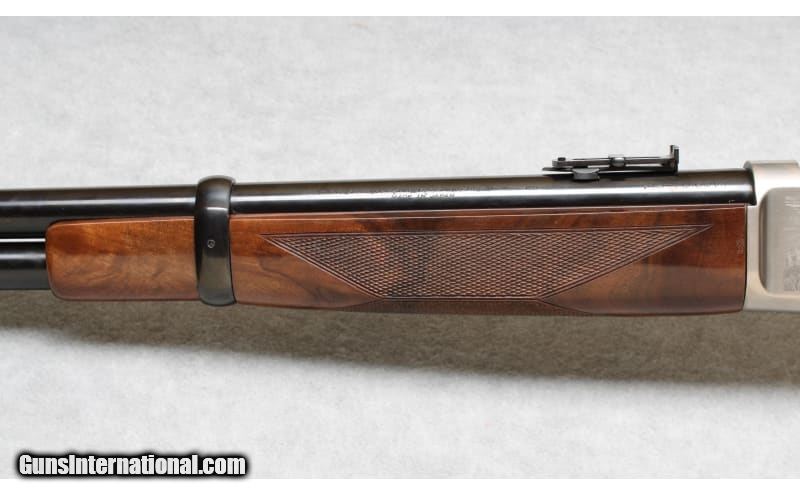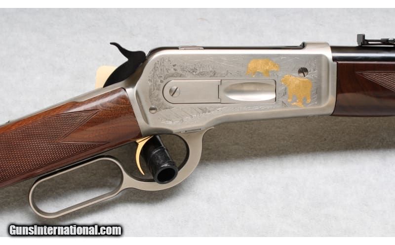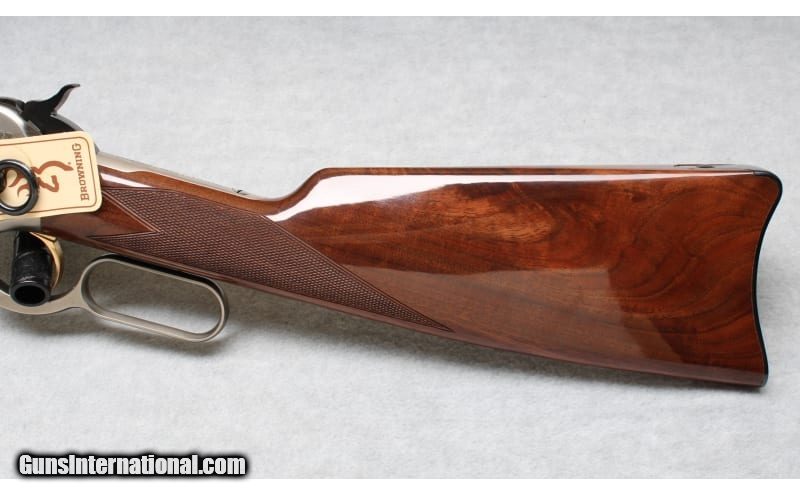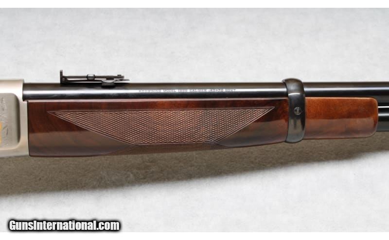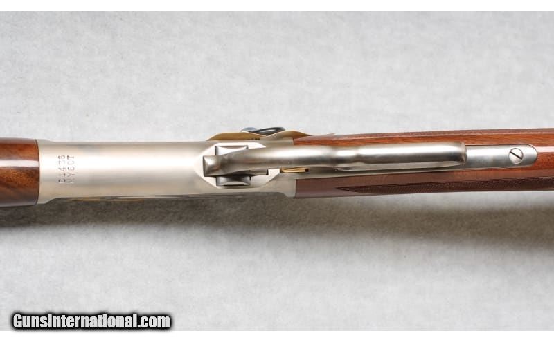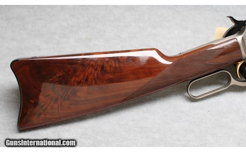 Description: Appears as new with factory box. Superbly crafted Model 1885 rifle, 22" barrel chambered for the powerful .45-70 cartridge, with full length mag tube. Premium high gloss wood, sharp checkering, and stainless receiver & lever with gold highlighted game scenes, polished curved metal butt plate, and factory gold trigger. .45-70 Government SOLD Chambers: Lever action Metal Condition: As new Wood Condition: As new Bore Condition: Bright Barrels: 22 Triggers: Factory Stock Dimensions: 13" LOP Fore End: Checkered Butt Pad: Curved metal butt plate Sights: Adjustable Item Location: La Vista, NE |