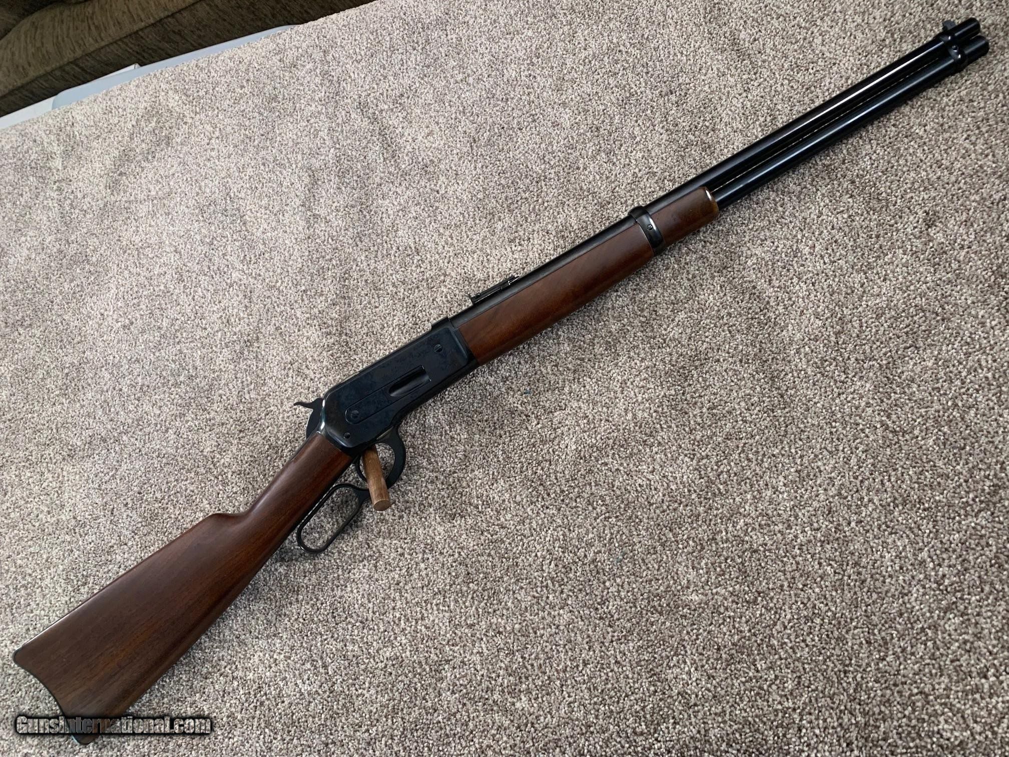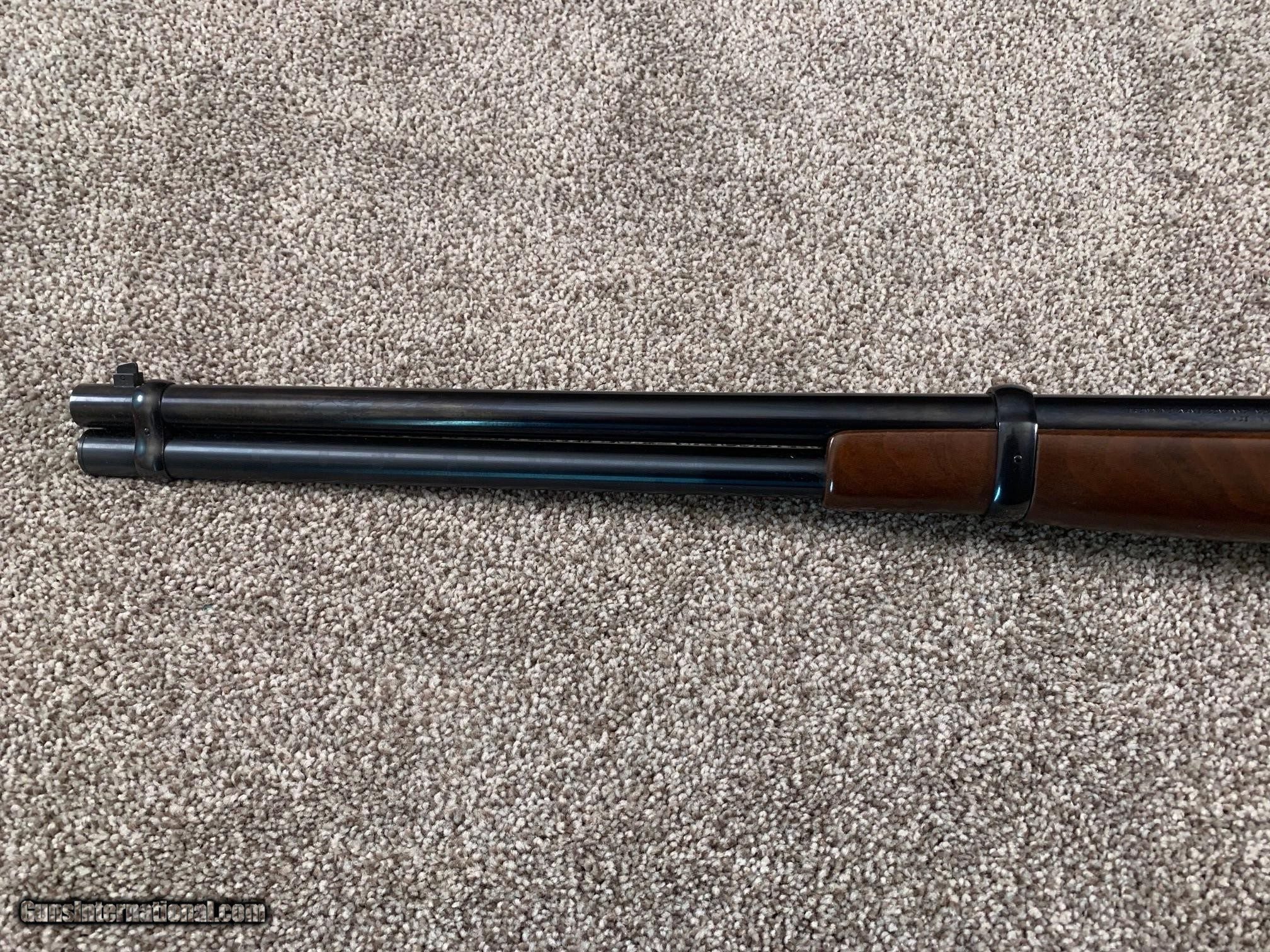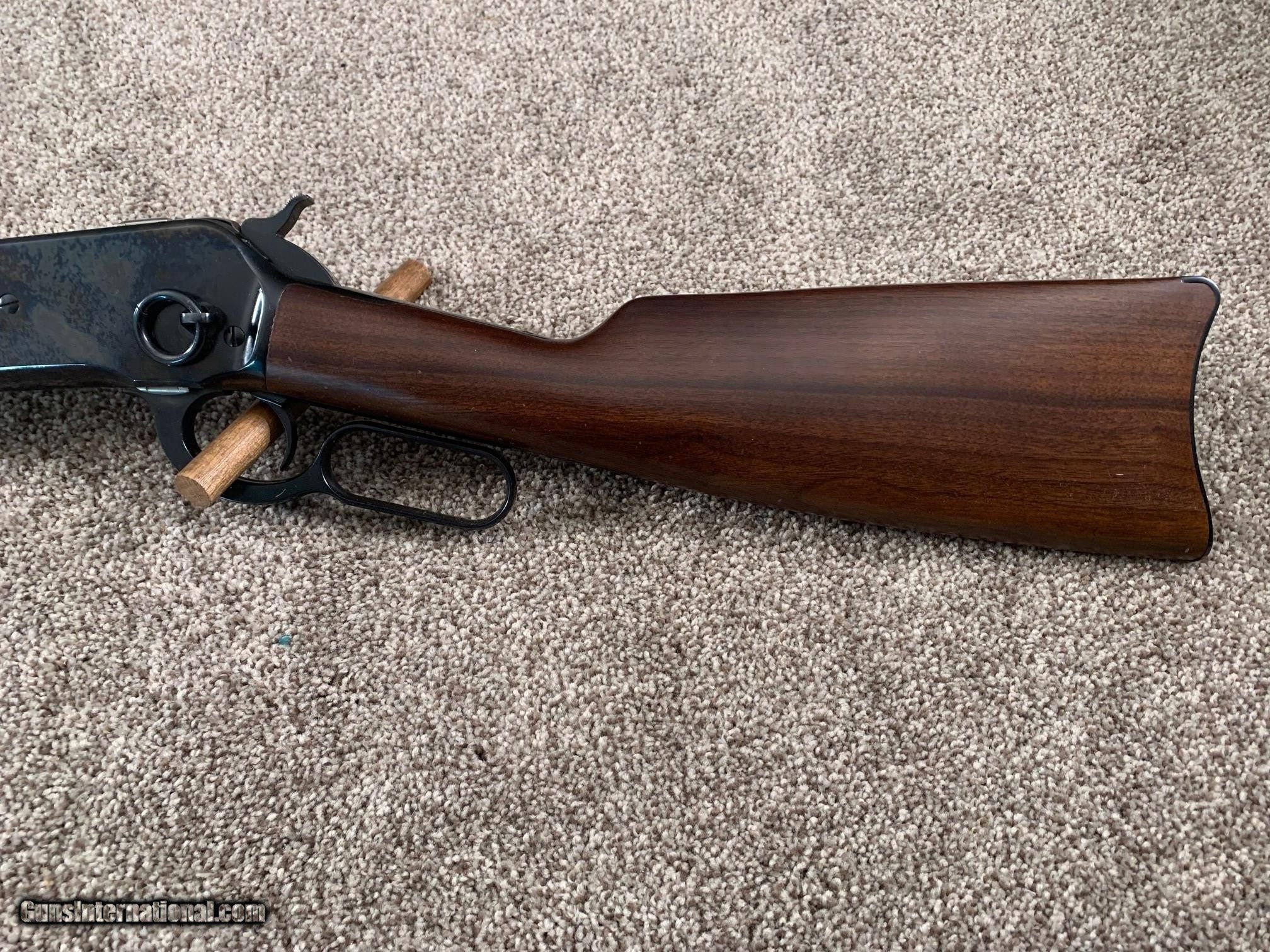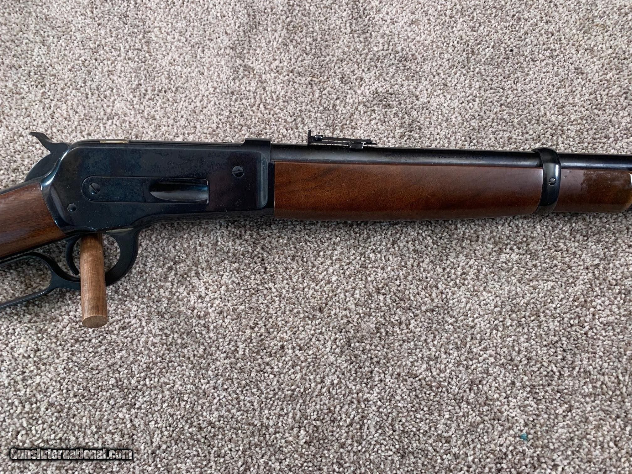 Description: This Limited Edition Browning 1886 saddle ring carbine is one of 7000 produced in 1992-93. It has a 22-inch round barrel, open rear sight with ladder, and crescent butt plate. Like the original Winchester model 1886, it has only the half-cock safety. Although I believe it has been fired, the condition is as new with no discernable blue wear and no significant blemishes to the metal or wood. The pictures tell the story. I do not have the box. SOLD Rifle Caliber: .45-70 Government |
