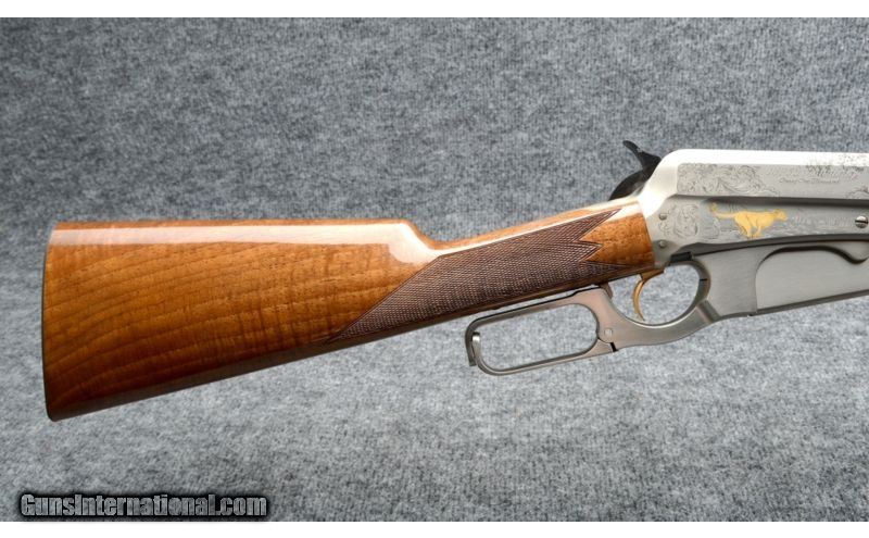 Description: With the founding of his company over a decade ago, John Moses Browning started designing innovative firearms well ahead of their time. The model 1895 was the first rifle produced by Winchester designed with a box magazine instead of a tubular one, and one of the last lever actions designed by John Browning. This 1895 is in excellent condition with the exception of some tarnishing on the receiver. The wood furniture is in excellent condition. This 1895 design was one of Teddy Roosevelt's favorite guns, and it could be yours, too! As only one of one thousand made, it's a beautiful, rare gun and can function just as well in a display case at home or hunting for just about any mid-sized game. SOLD Caliber Info: .30-40 Krag Chambers: Lever action Metal Condition: Very Good- Some tarnishing of metal on the receiver Wood Condition: Excellent- little to no marks or wear Bore Condition: Very Good- sharp rifling, needs cleaning Barrels: 24 inch Triggers: 5 lb Stock: Checkered walnut Stock Dimensions: 13.5 inch LOP Fore End: Checkered walnut Butt Pad: Metal buttplate Weight: 8 lb, 0 oz Sights: Brass front, Buckhorn rear Extras: Original box Item Location: Chesterfield, MI |
