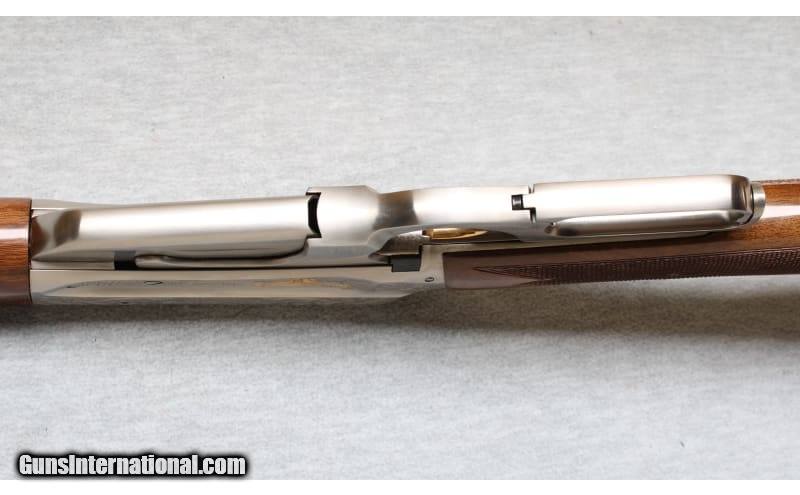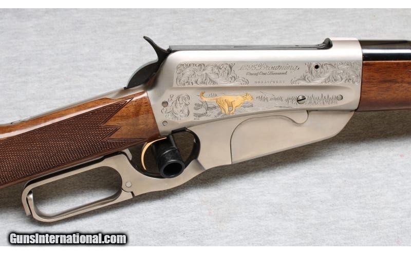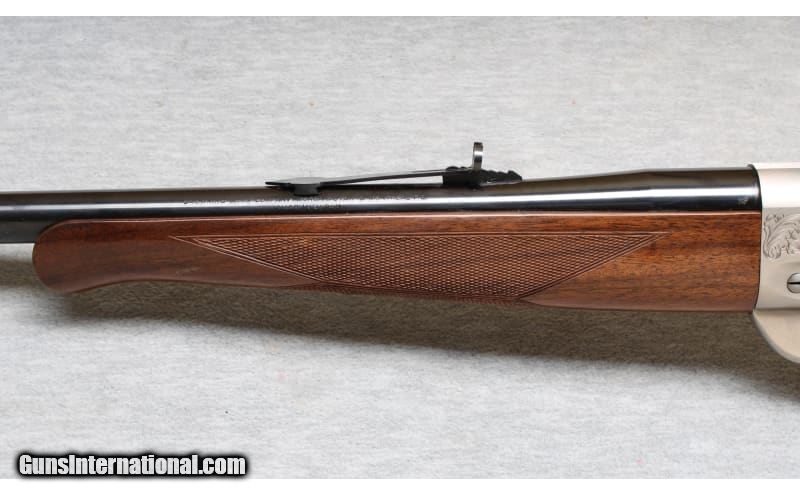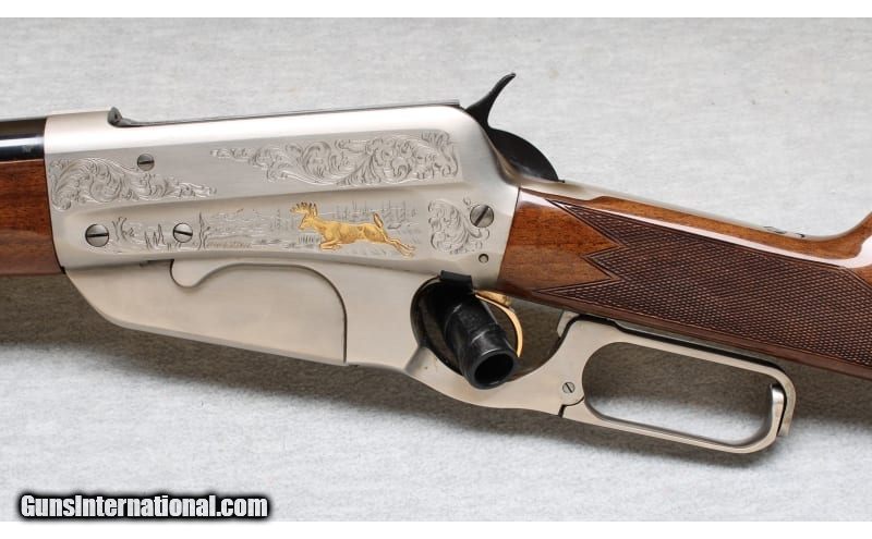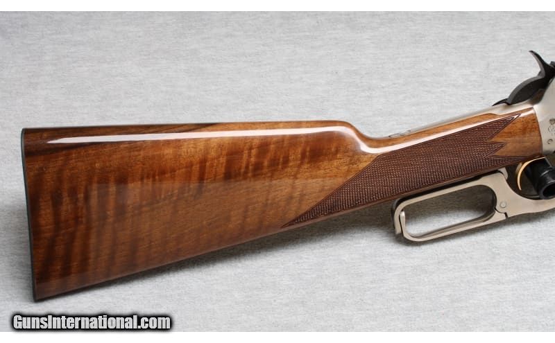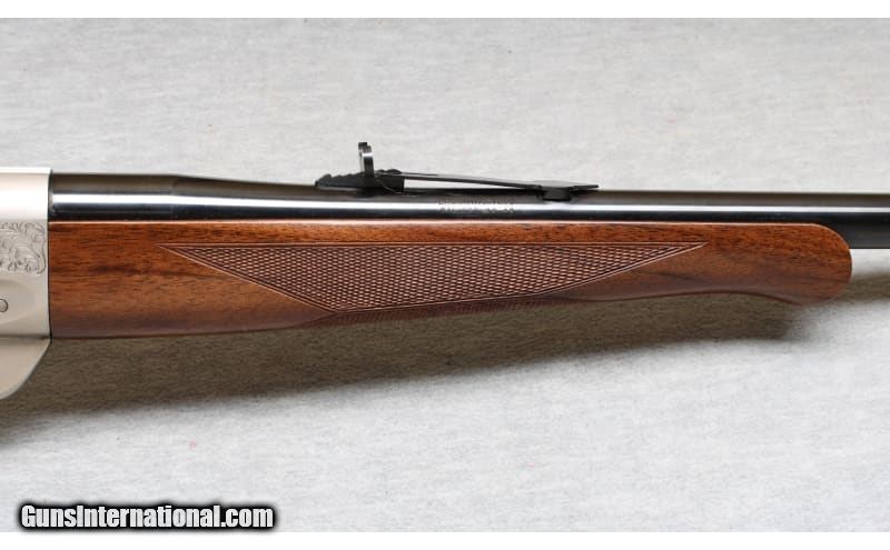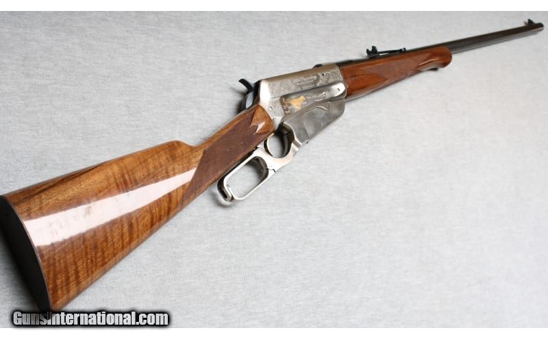 Description: Appears as new with factory box. Superb lever action rifle - 24" blued heavy barrel, engraved stainless receiver with gold inlays and smooth lever action. Nicely figured high gloss finish checkered wood stock with smooth metal butt plate. An outstanding choice for Browning collectors. .30-40 Krag SOLD Chambers: Lever action Metal Condition: As new Wood Condition: As new Bore Condition: Bright Barrels: 24 Triggers: Factory Stock Dimensions: 13" LOP Fore End: Checkered Butt Pad: Metal butt plate Sights: Factory iron sights Item Location: La Vista, NE |